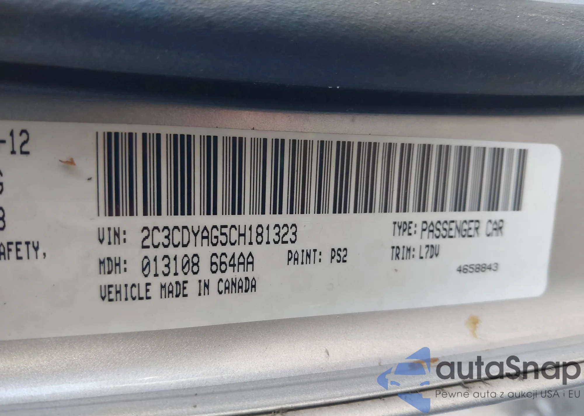 LOT: 43949039 VIN: 2C3CDYAG5CH181323