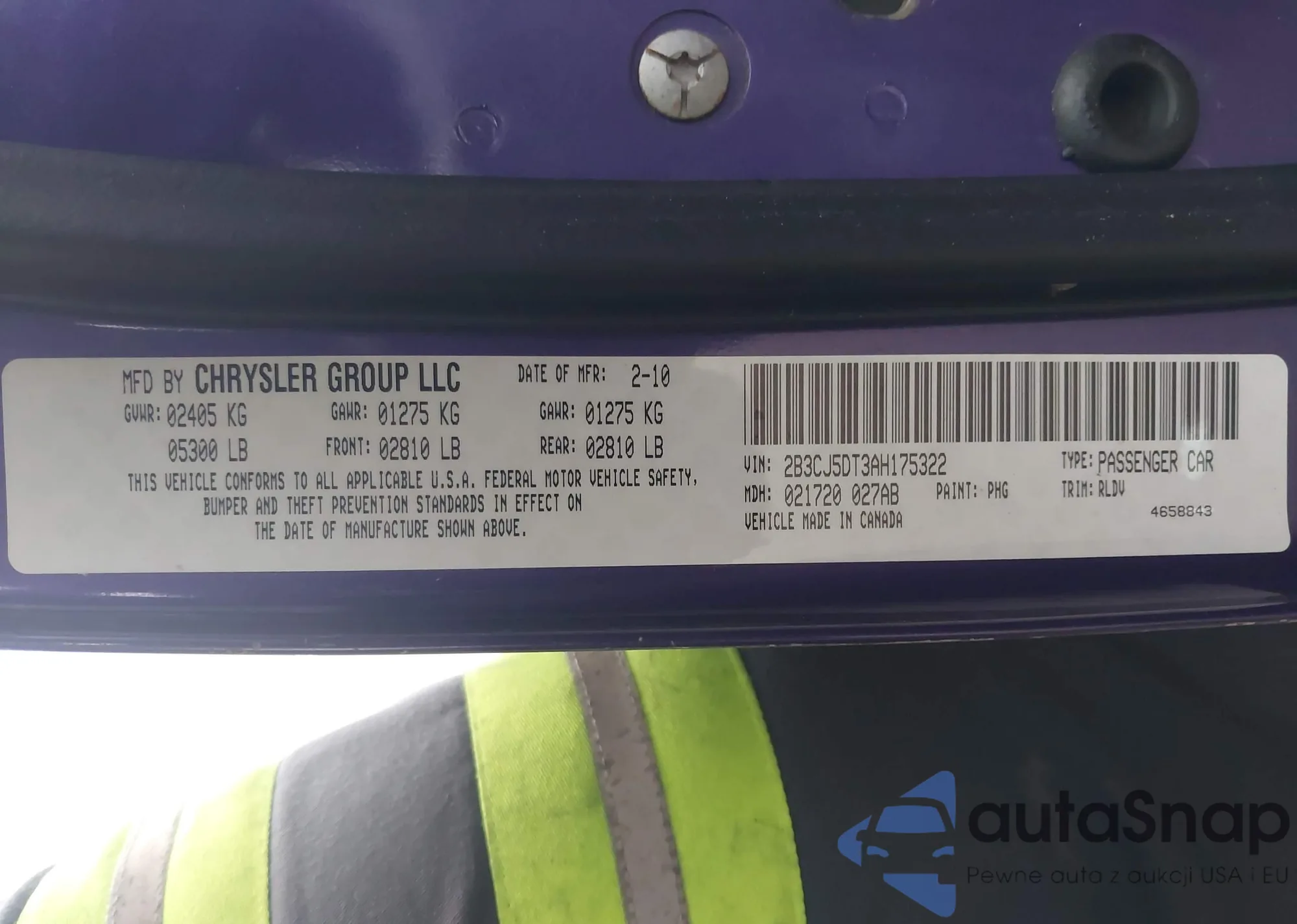 • VIN 2B3CJ5DT3AH175322