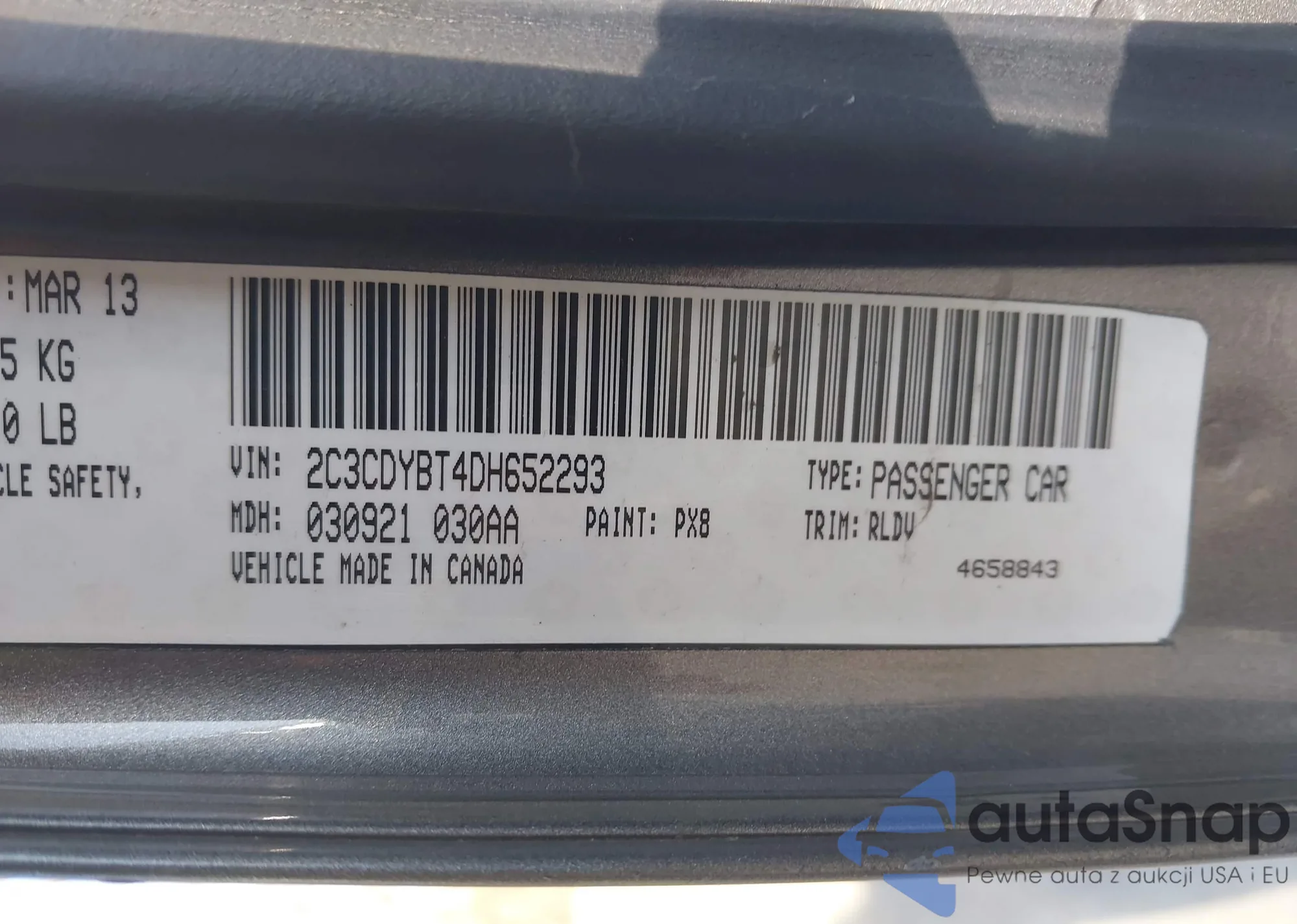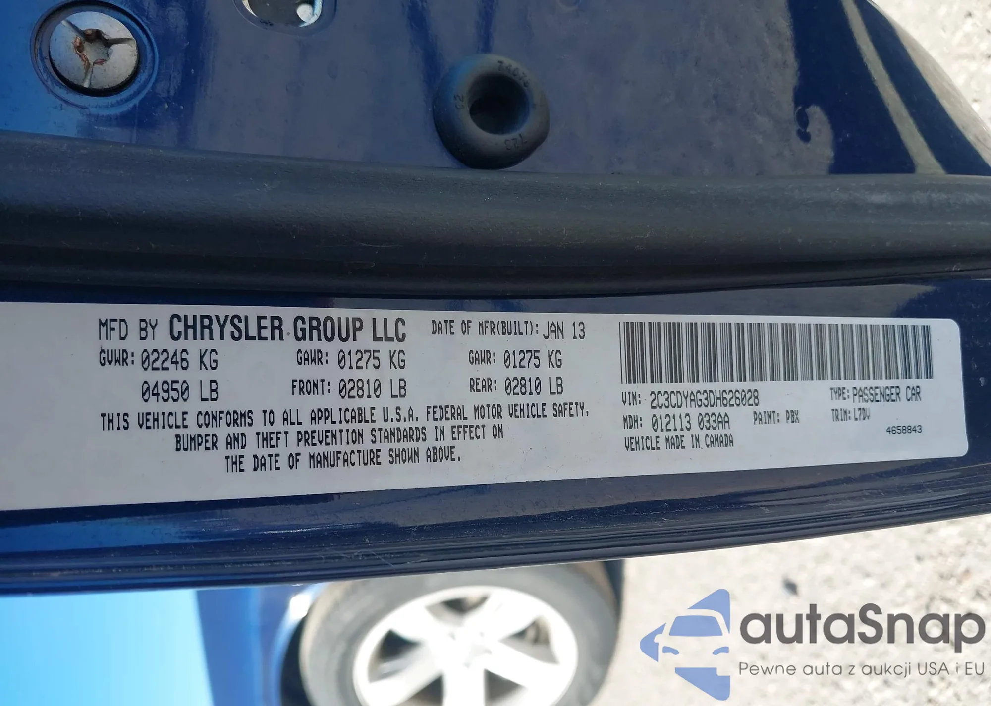 LOT: 44201571 VIN: 2C3CDYAG3DH626028