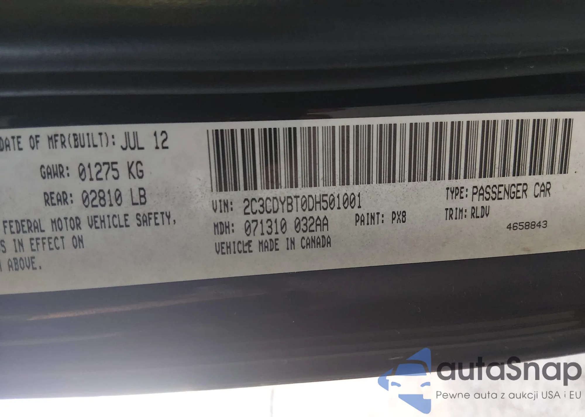 • VIN 2C3CDYBT0DH501001
