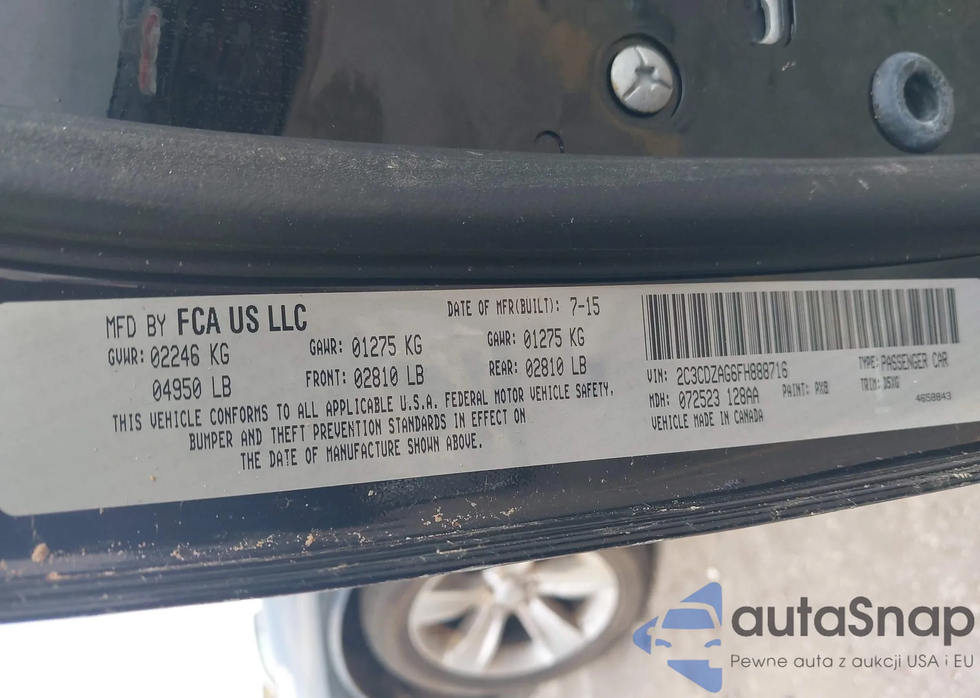 LOT: 43904655 VIN: 2C3CDZAG6FH888716