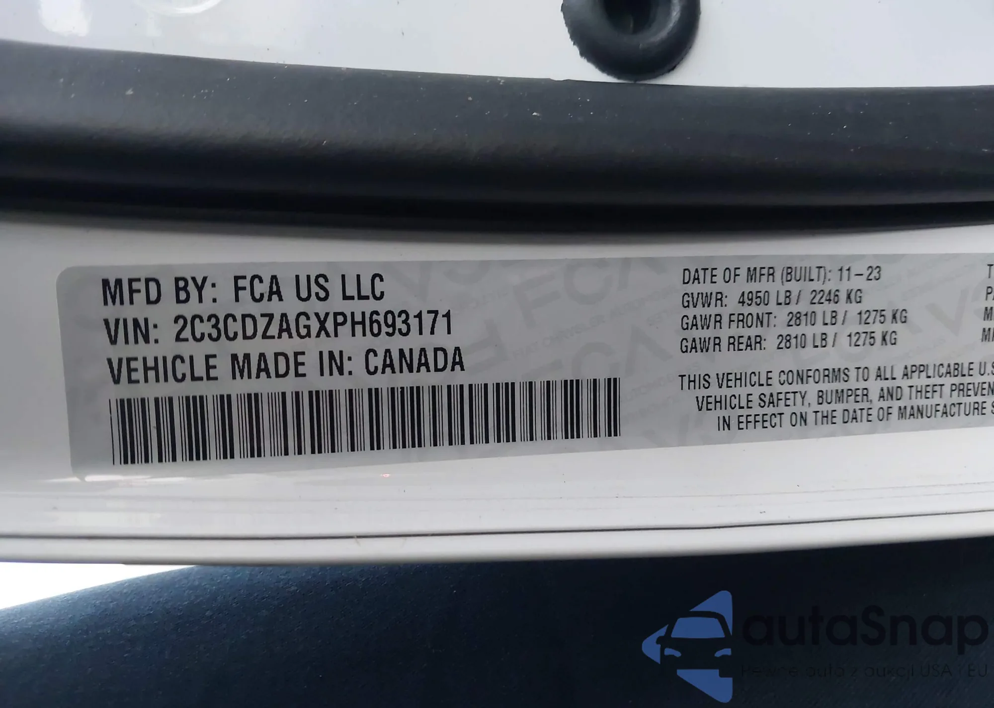 • VIN 2C3CDZAGXPH693171