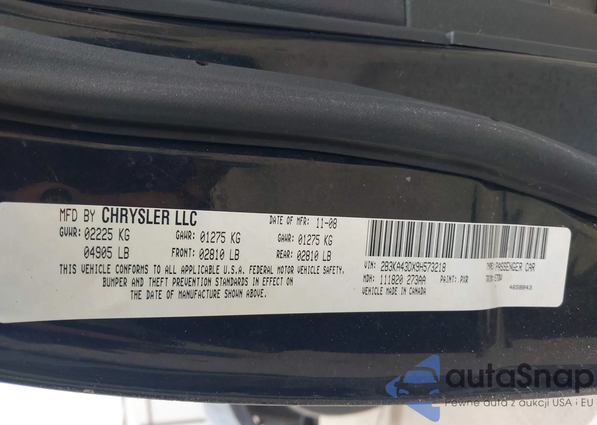 • VIN 2B3KA43DX9H573218