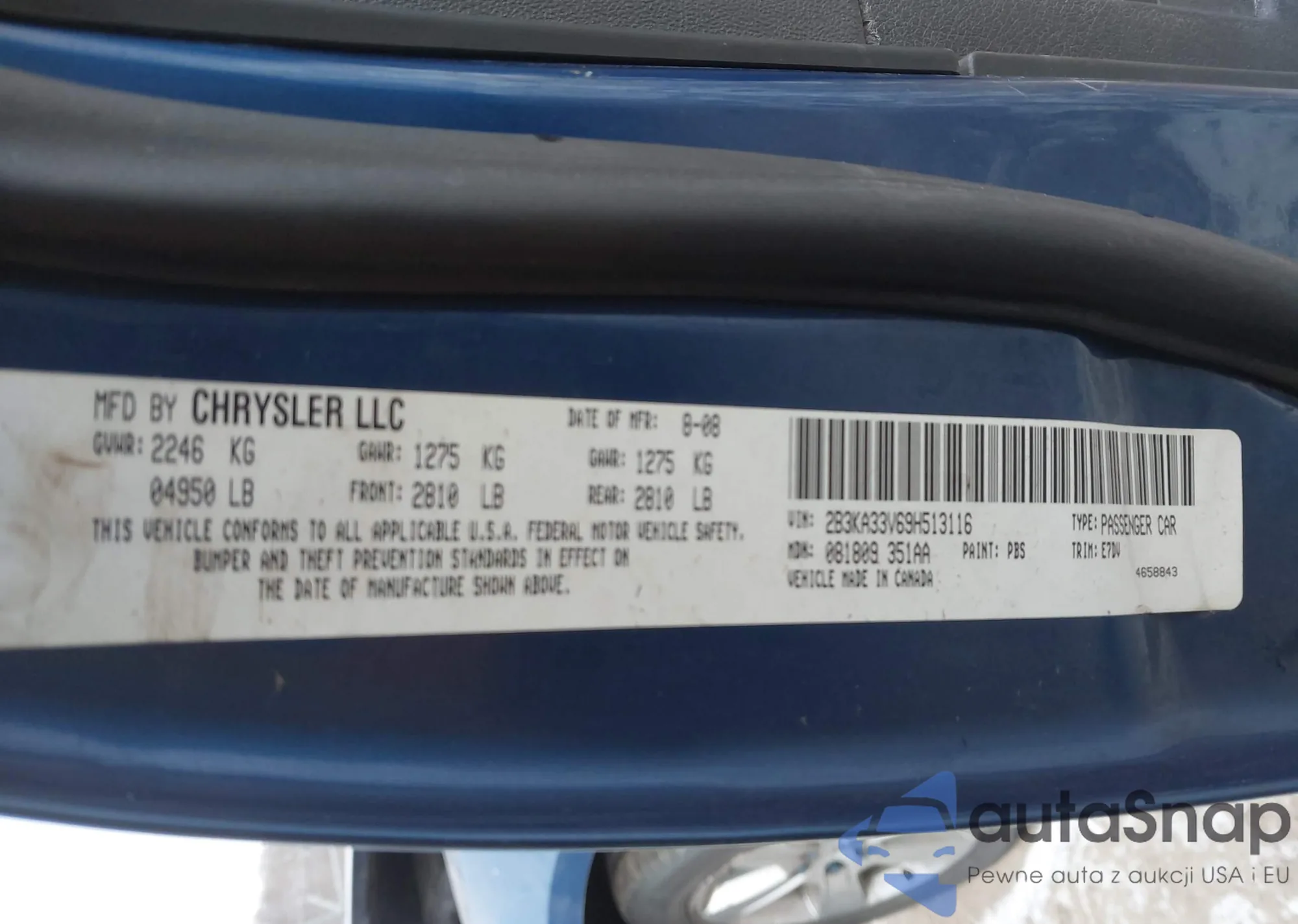 • VIN 2B3KA33V69H513116