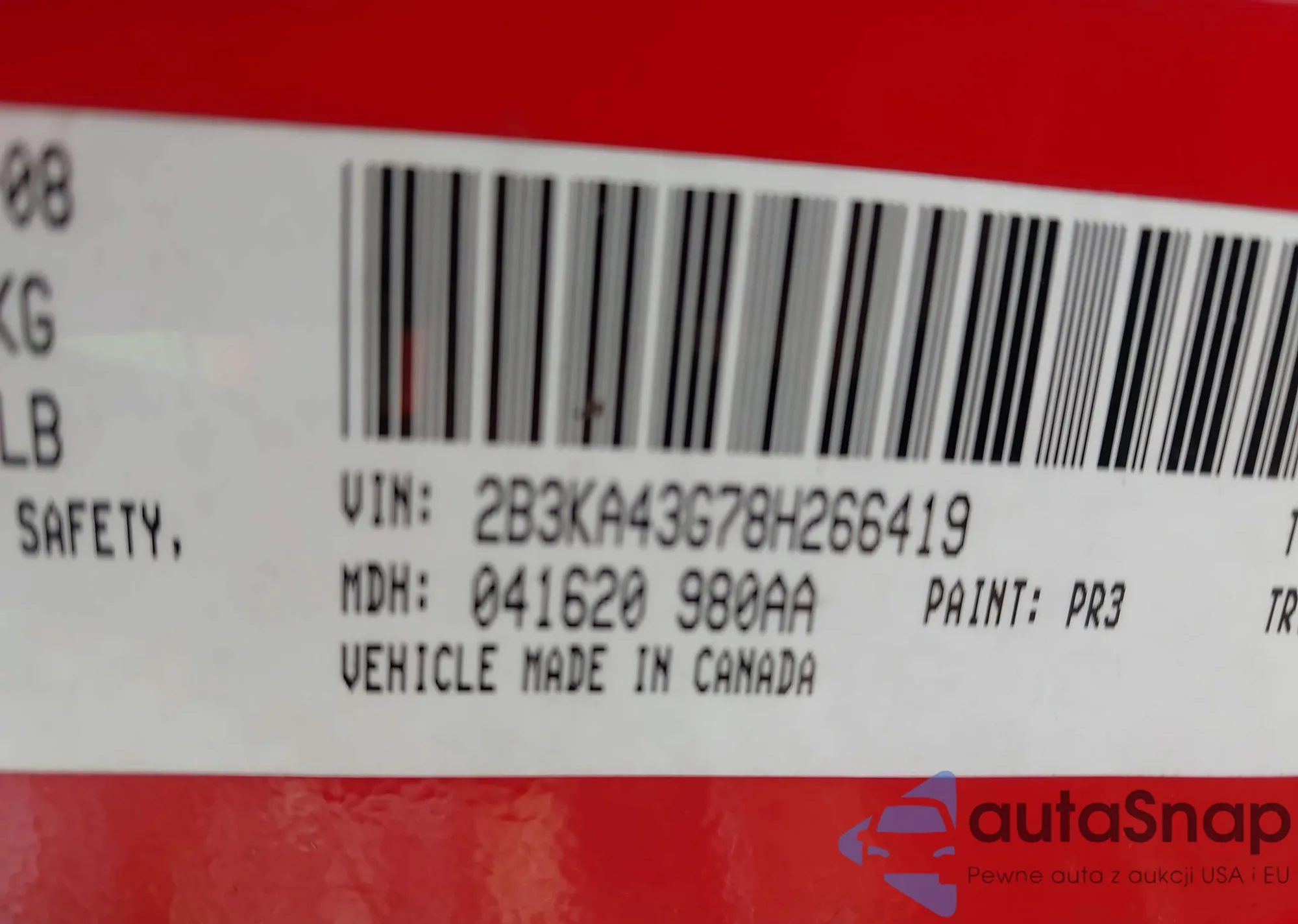 • VIN 2B3KA43G78H266419
