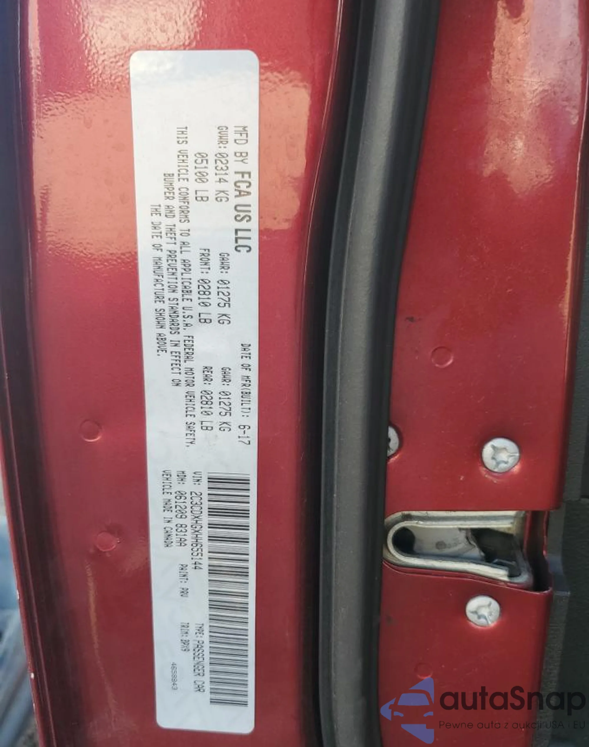 LOT: 80398205 VIN: 2C3CDXHGXHH655144