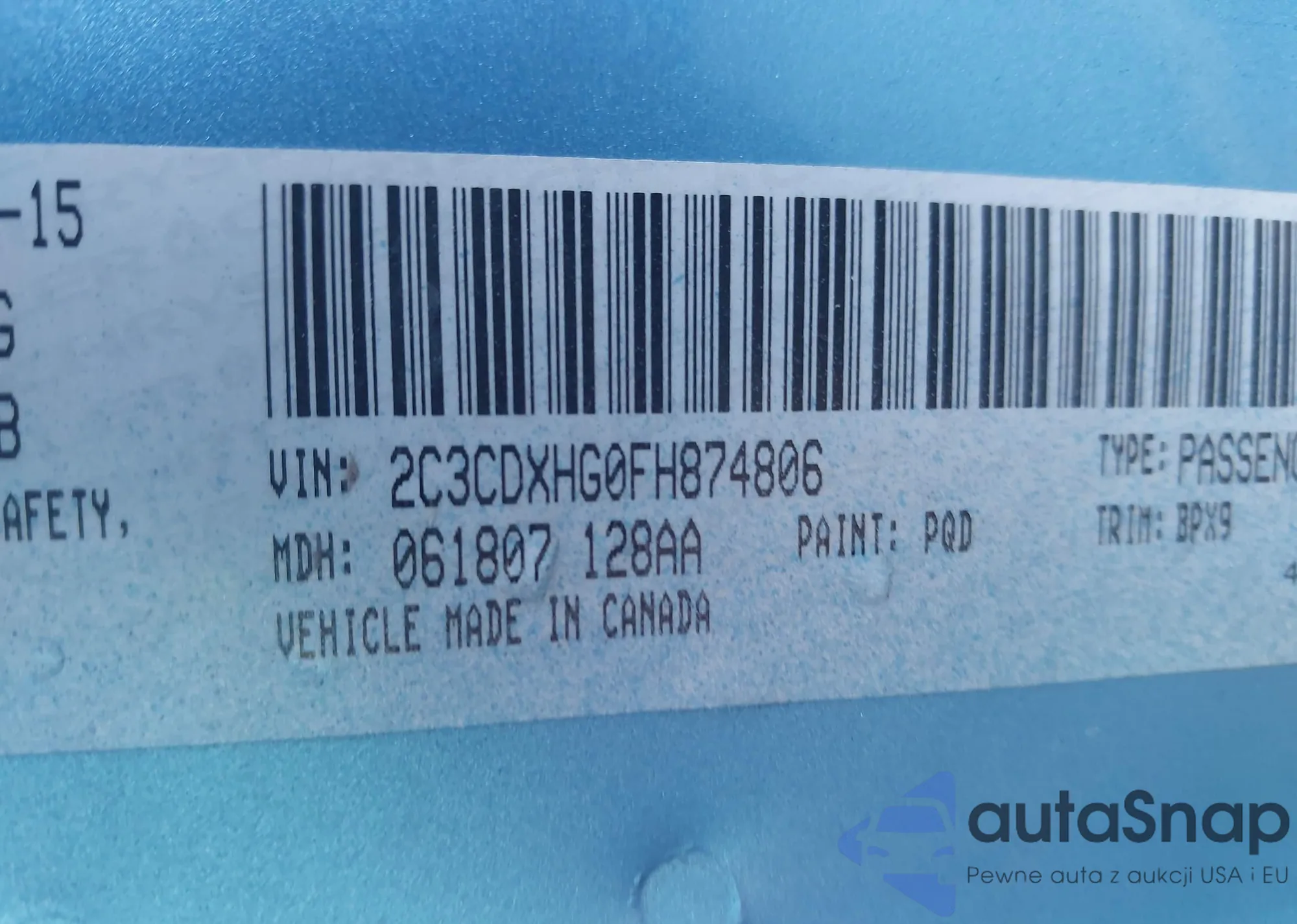 • VIN 2C3CDXHG0FH874806
