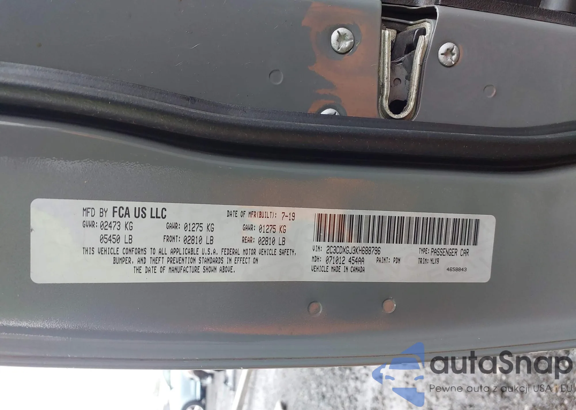 LOT: 42915109 VIN: 2C3CDXGJ3KH688796