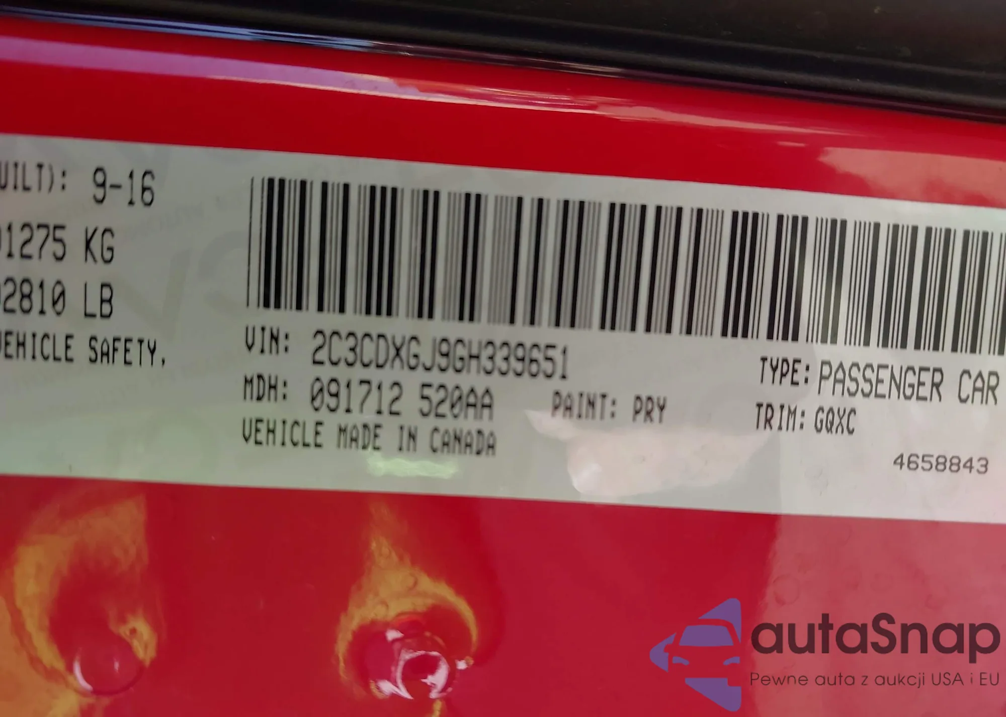 LOT: 43916984 VIN: 2C3CDXGJ9GH339651