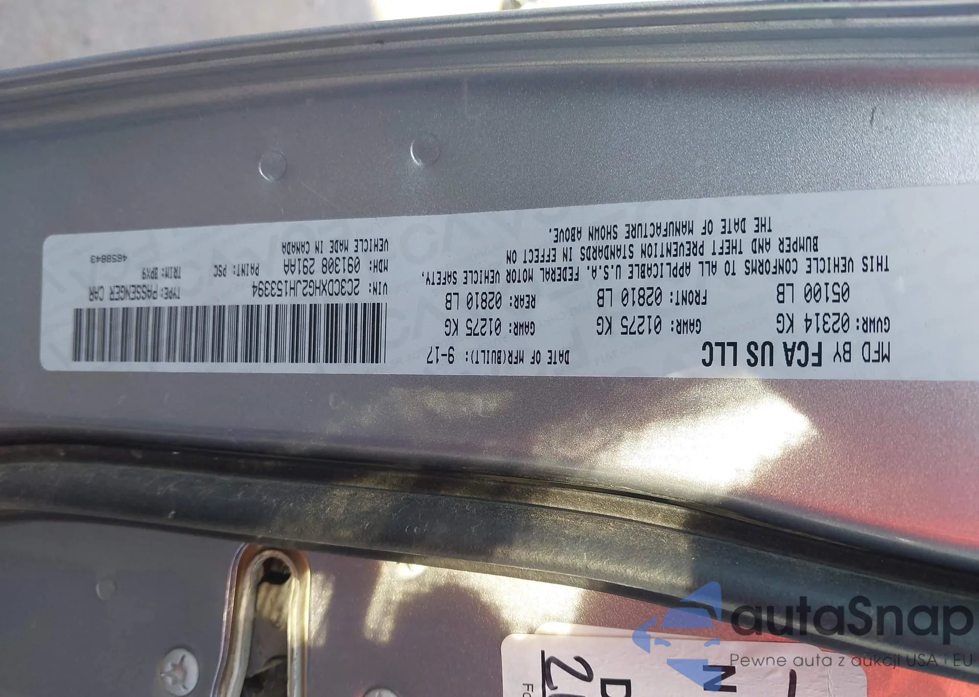 LOT: 44343393 VIN: 2C3CDXHG2JH153394