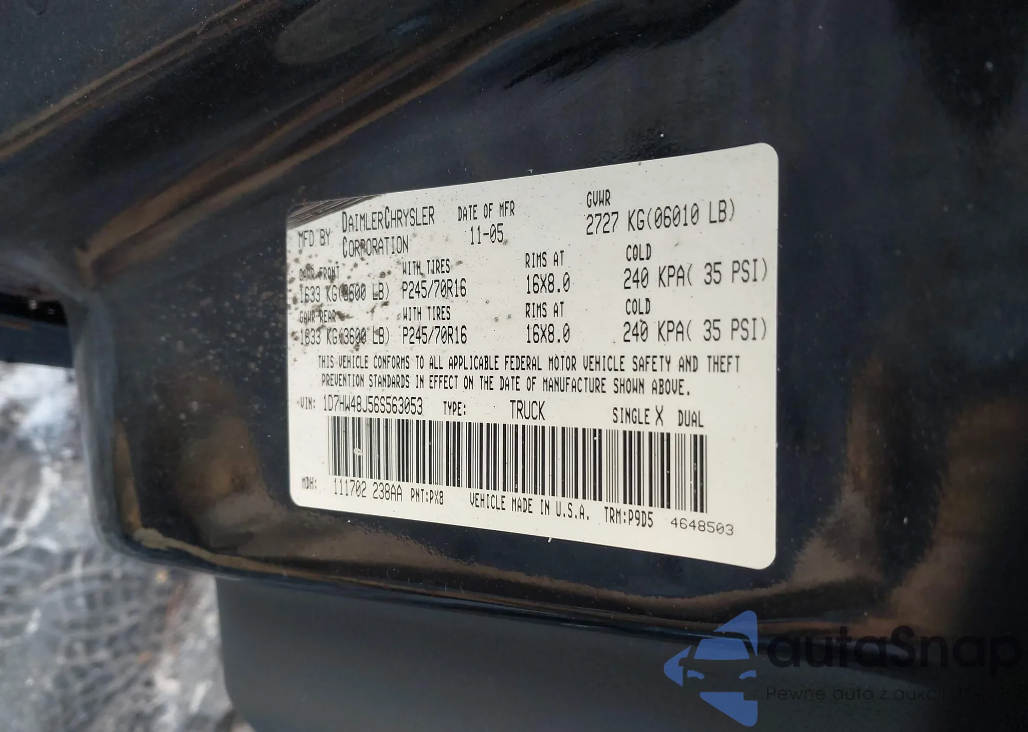 • VIN 1D7HW48J56S563053