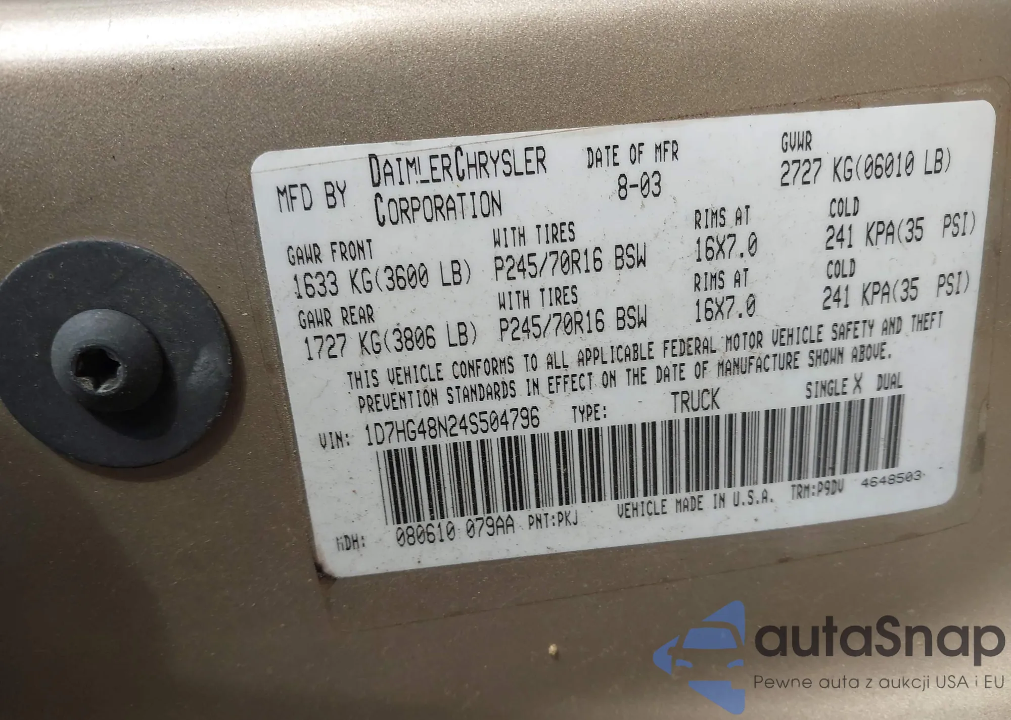 LOT: 44199153 VIN: 1D7HG48N24S504796