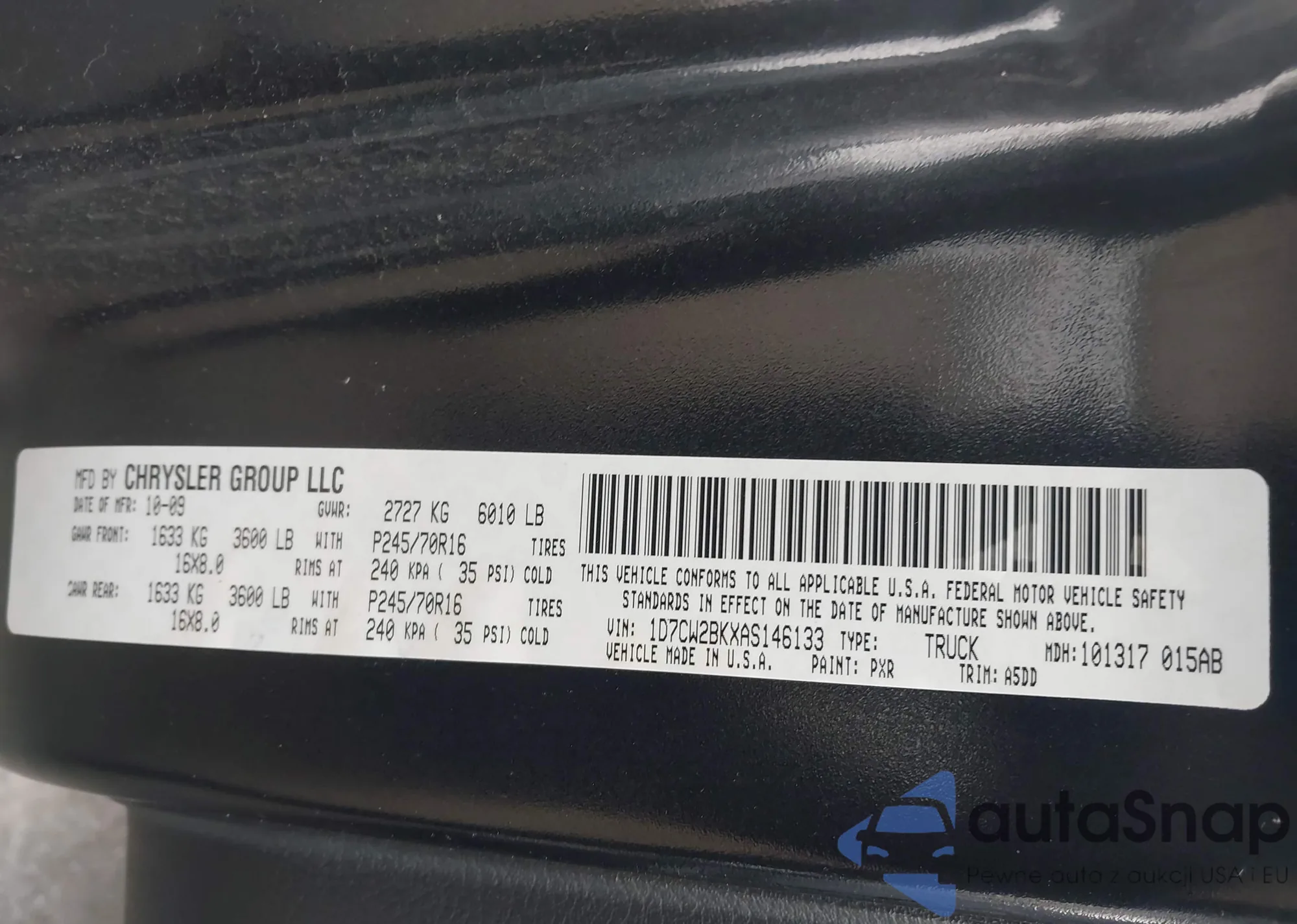 • VIN 1D7CW2BKXAS146133