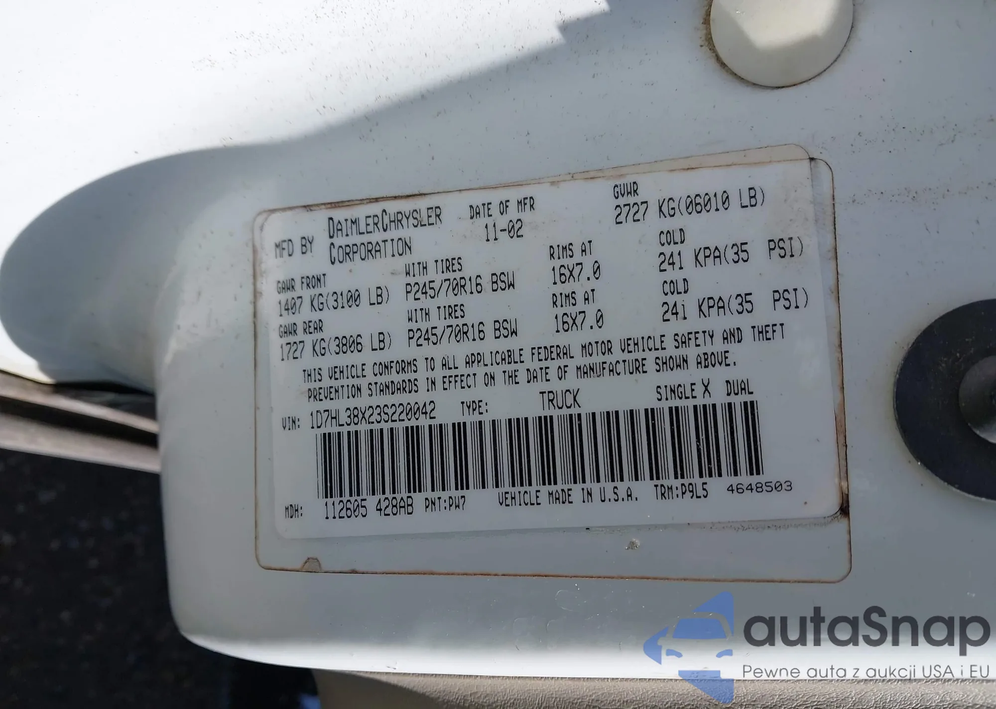 • VIN 1D7HL38X23S220042
