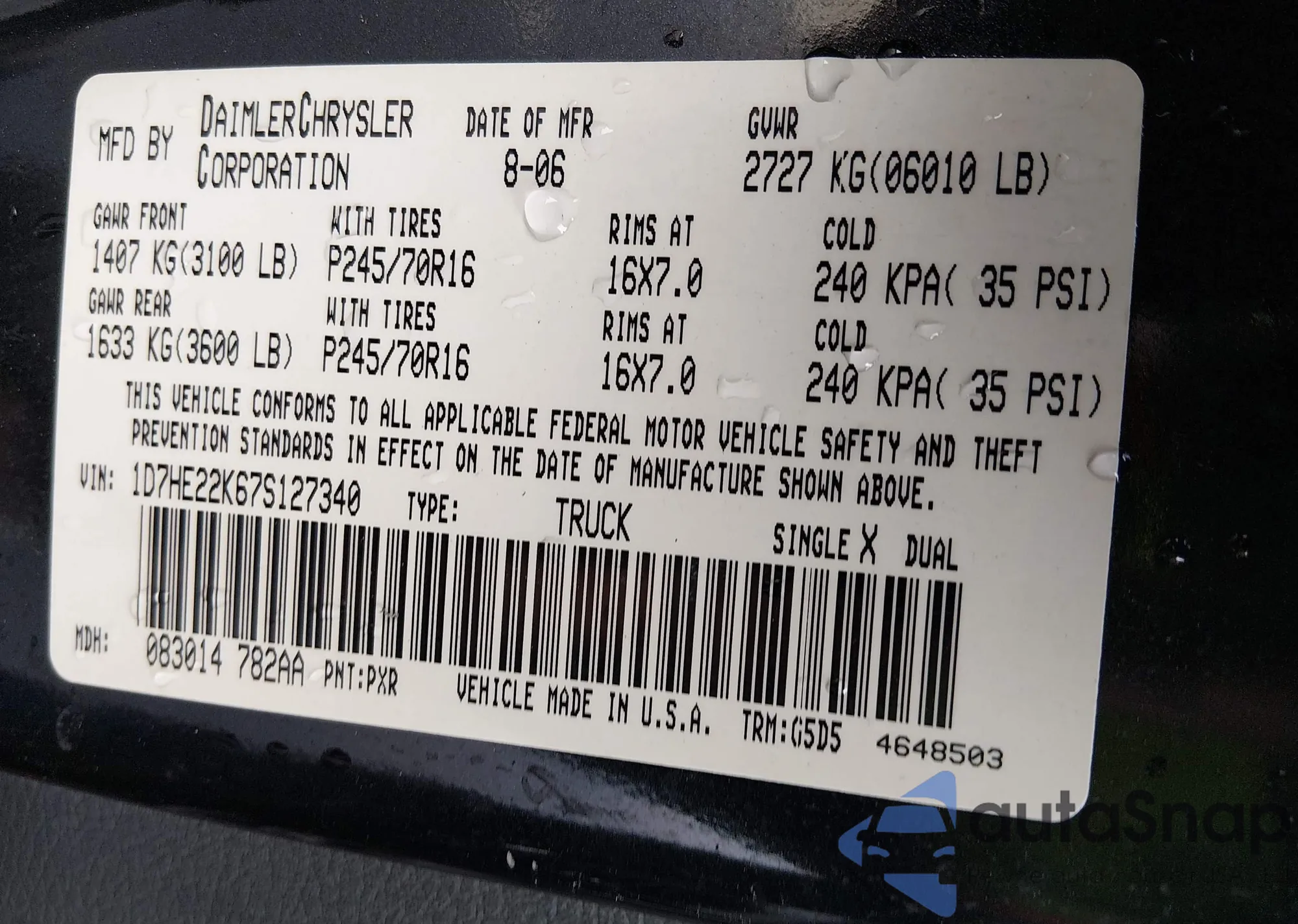 • VIN 1D7HE22K67S127340