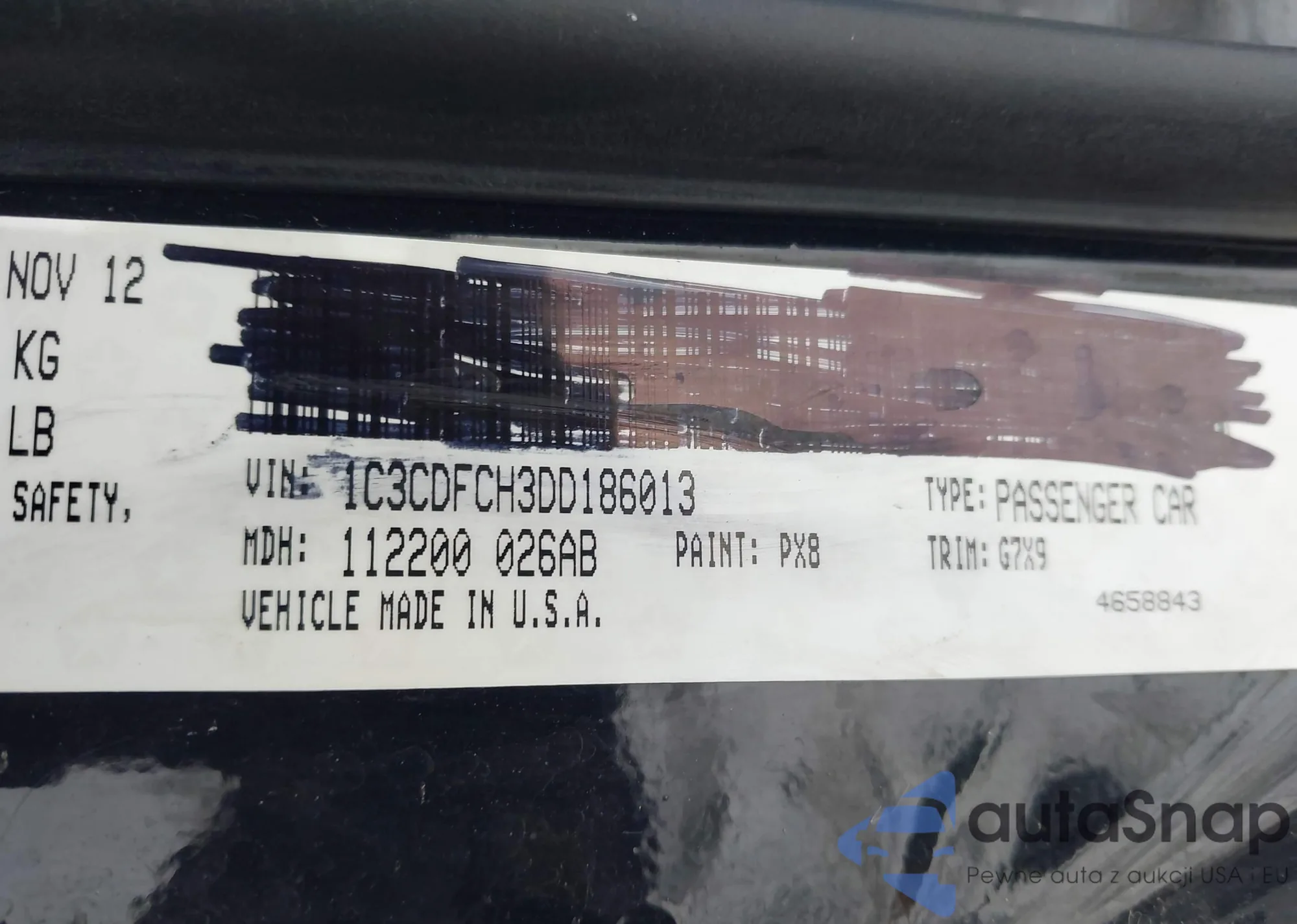 LOT: 43907205 VIN: 1C3CDFCH3DD186013