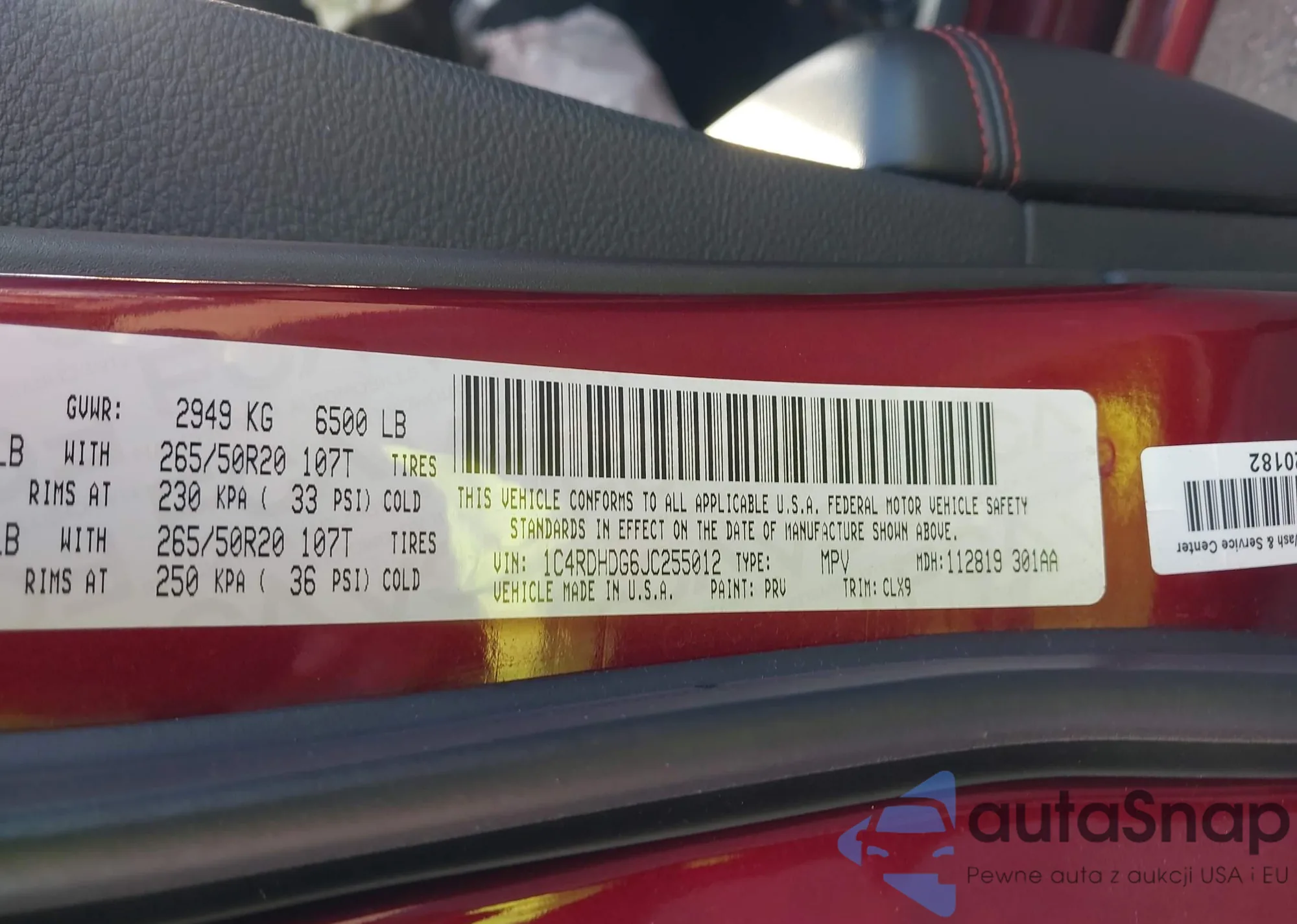 • VIN 1C4RDHDG6JC255012