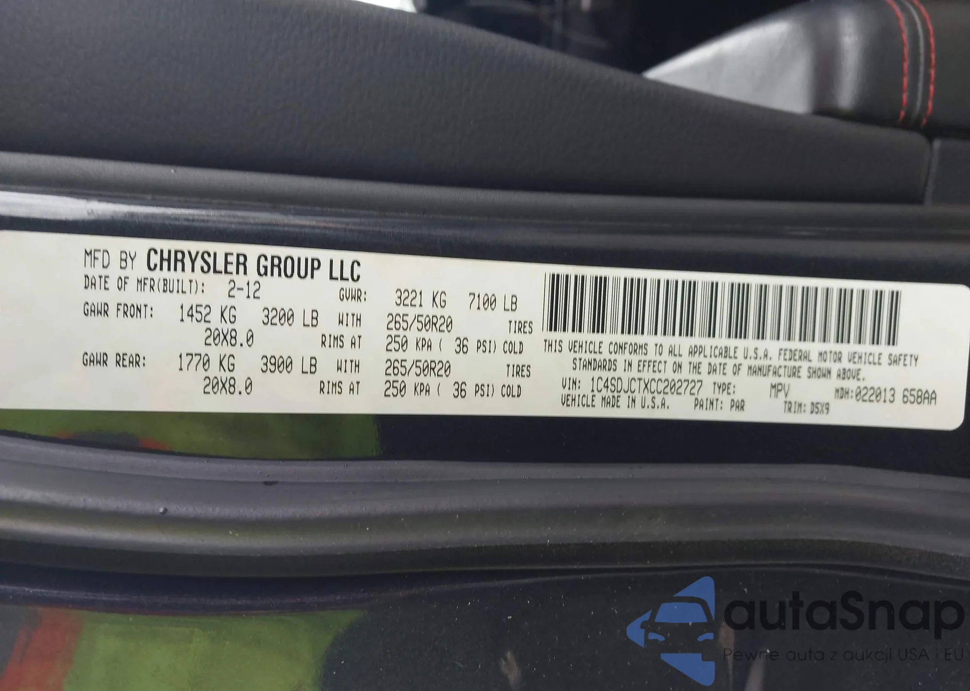 LOT: 44172476 VIN: 1C4SDJCTXCC202727