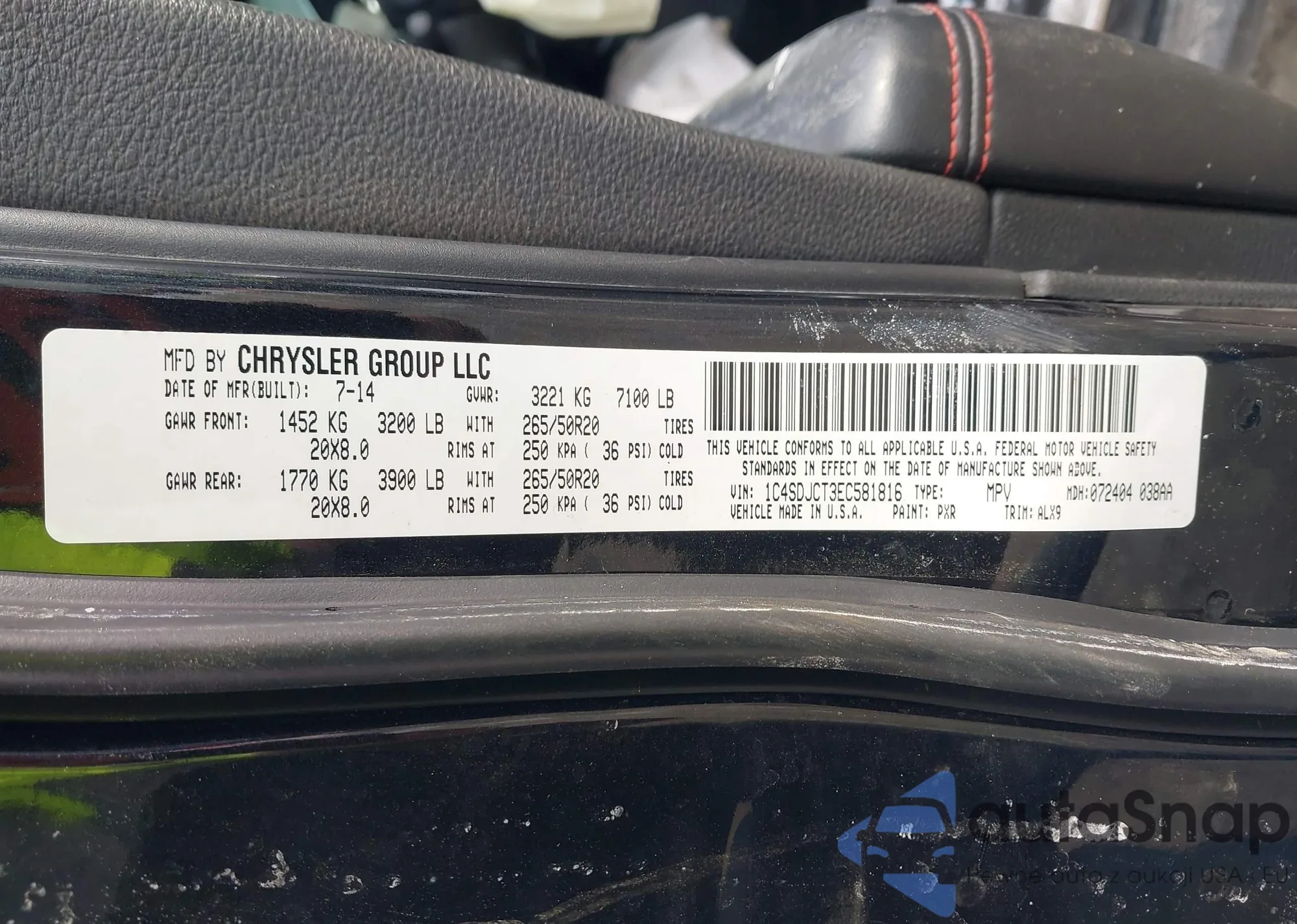 LOT: 44200576 VIN: 1C4SDJCT3EC581816