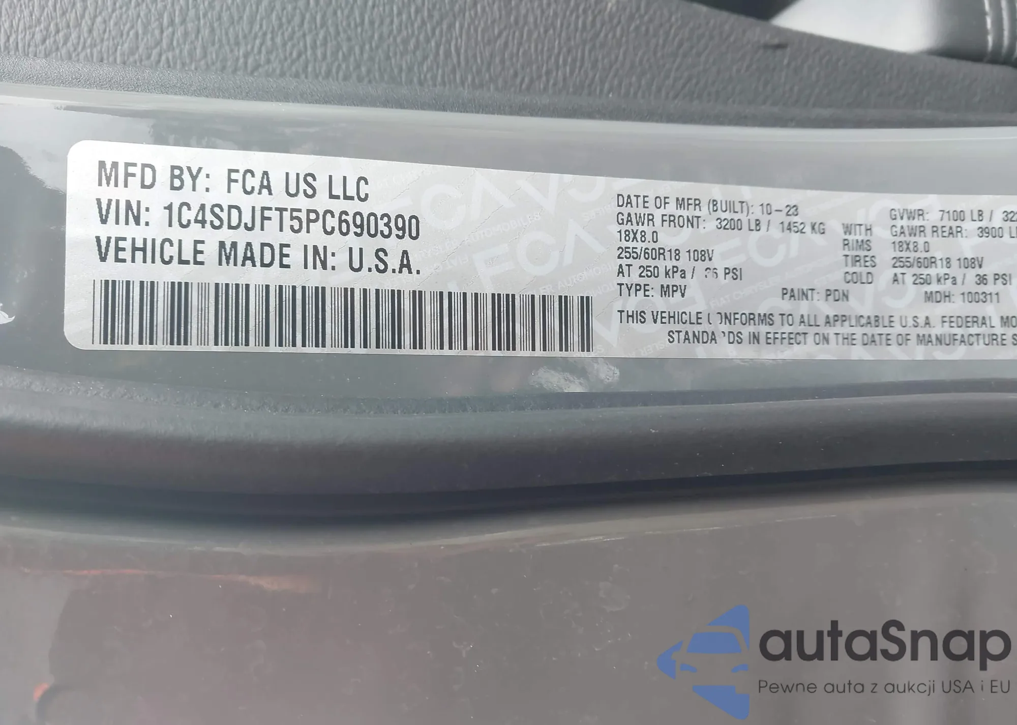 • VIN 1C4SDJFT5PC690390