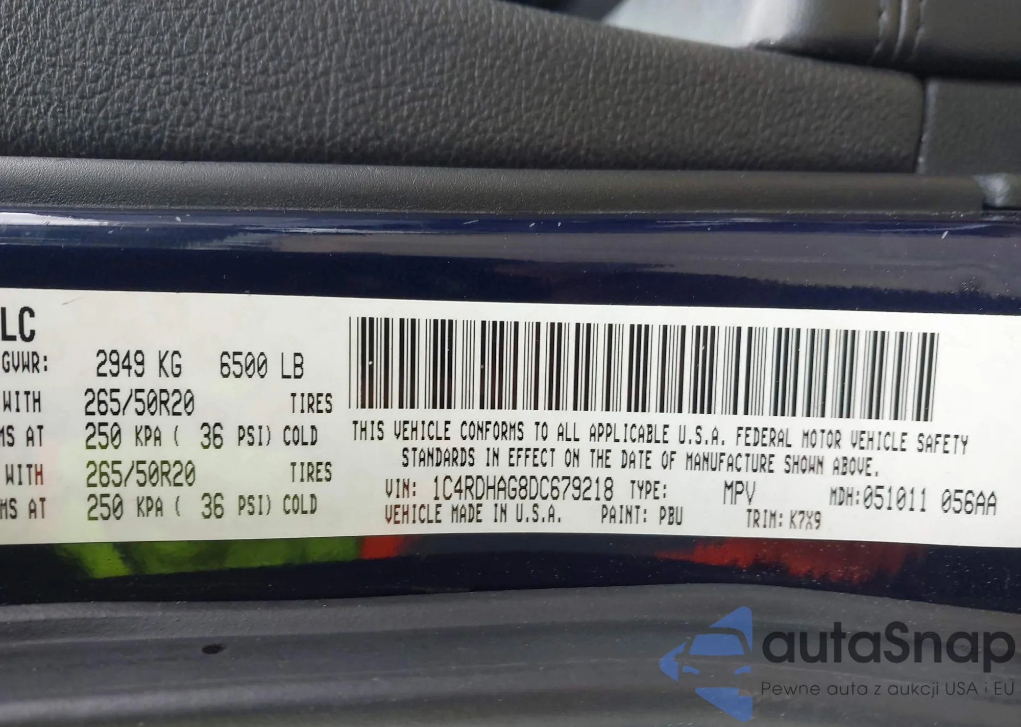 • VIN 1C4RDHAG8DC679218