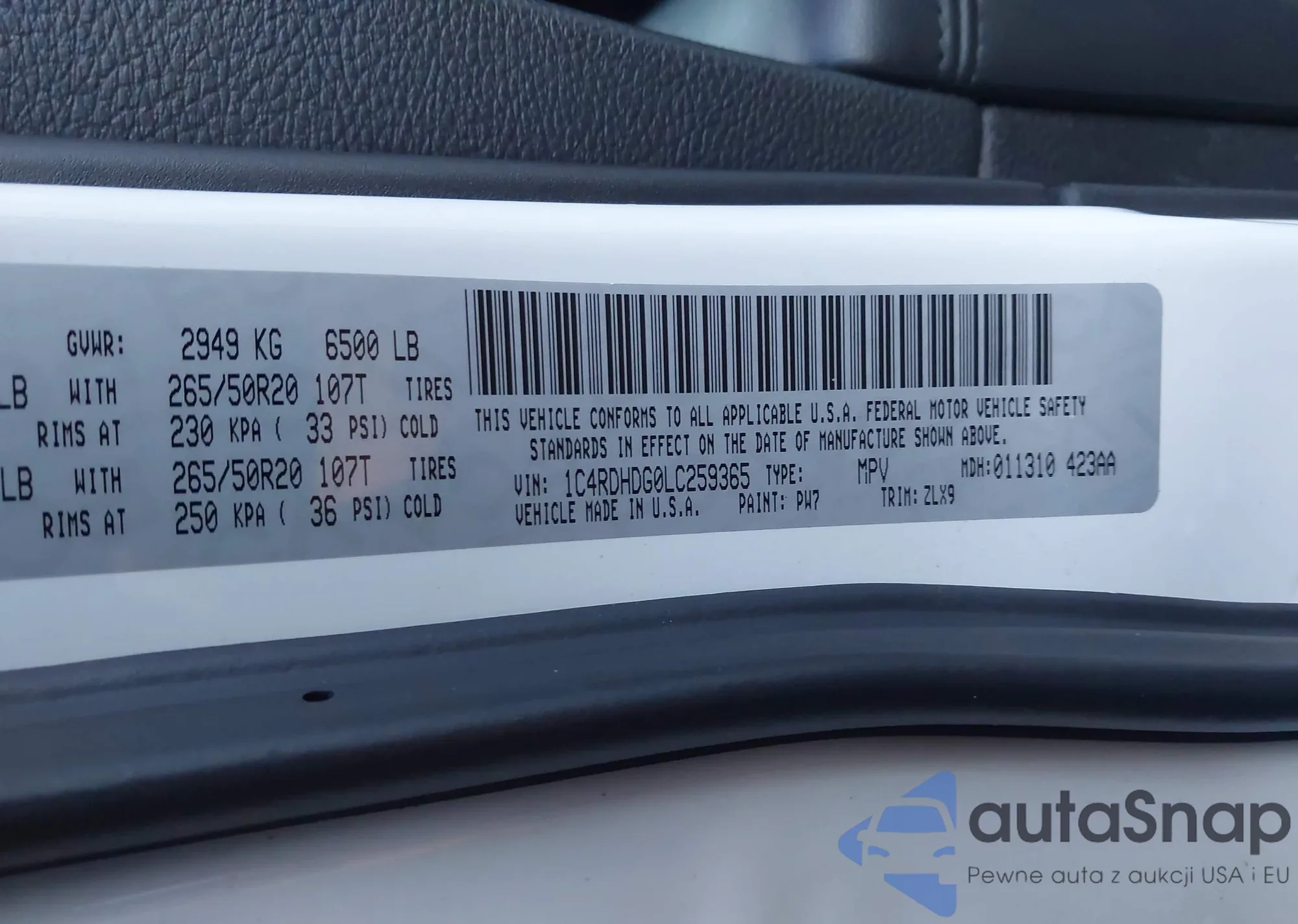 • VIN 1C4RDHDG0LC259365