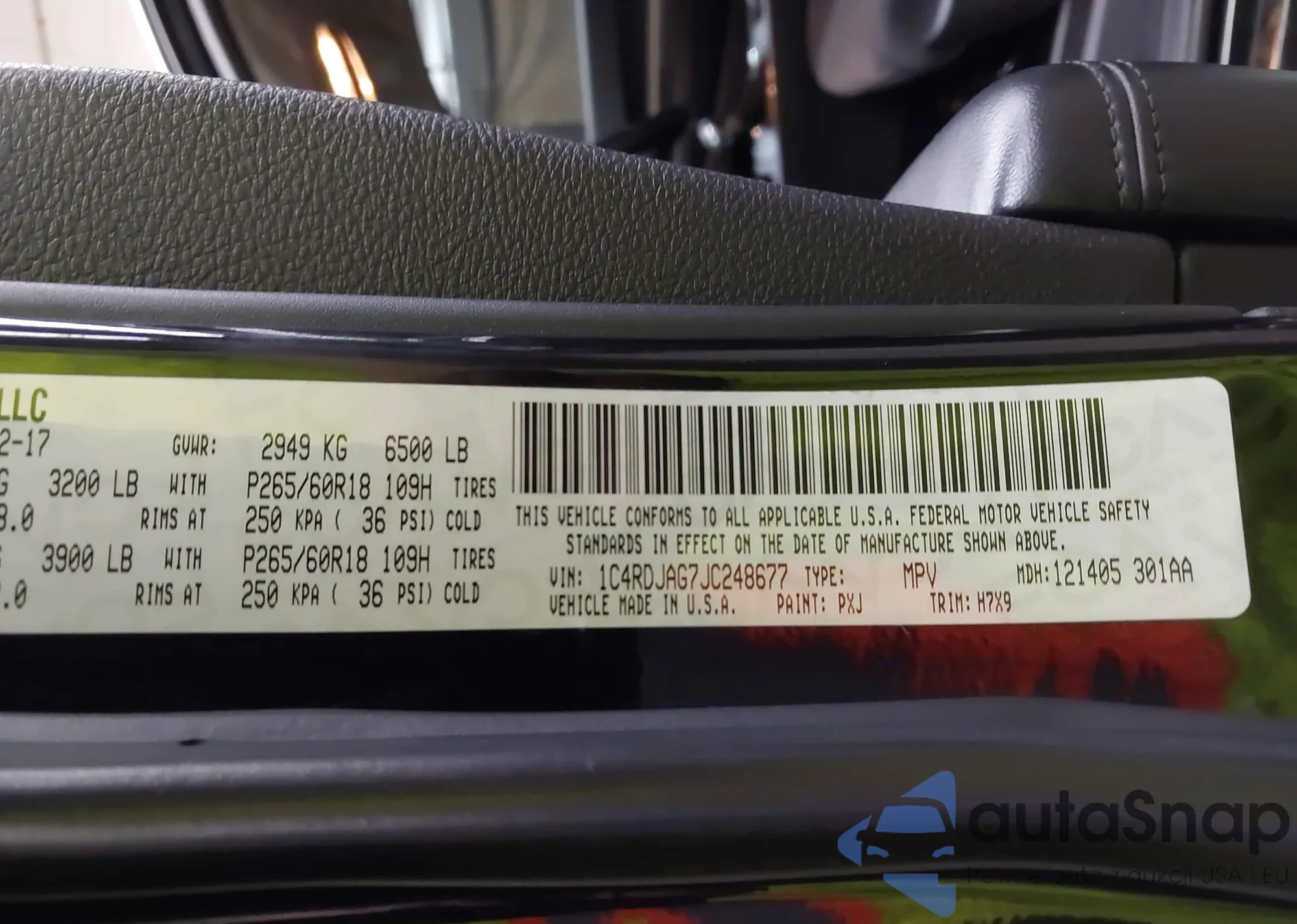 • VIN 1C4RDJAG7JC248677