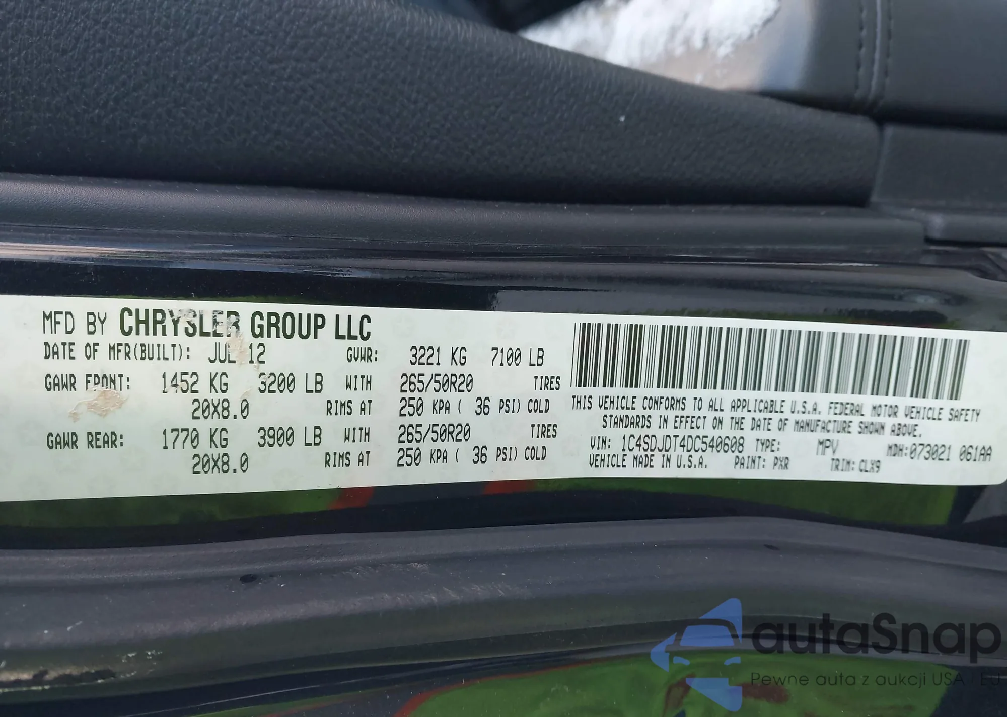 LOT: 44199054 VIN: 1C4SDJDT4DC540608