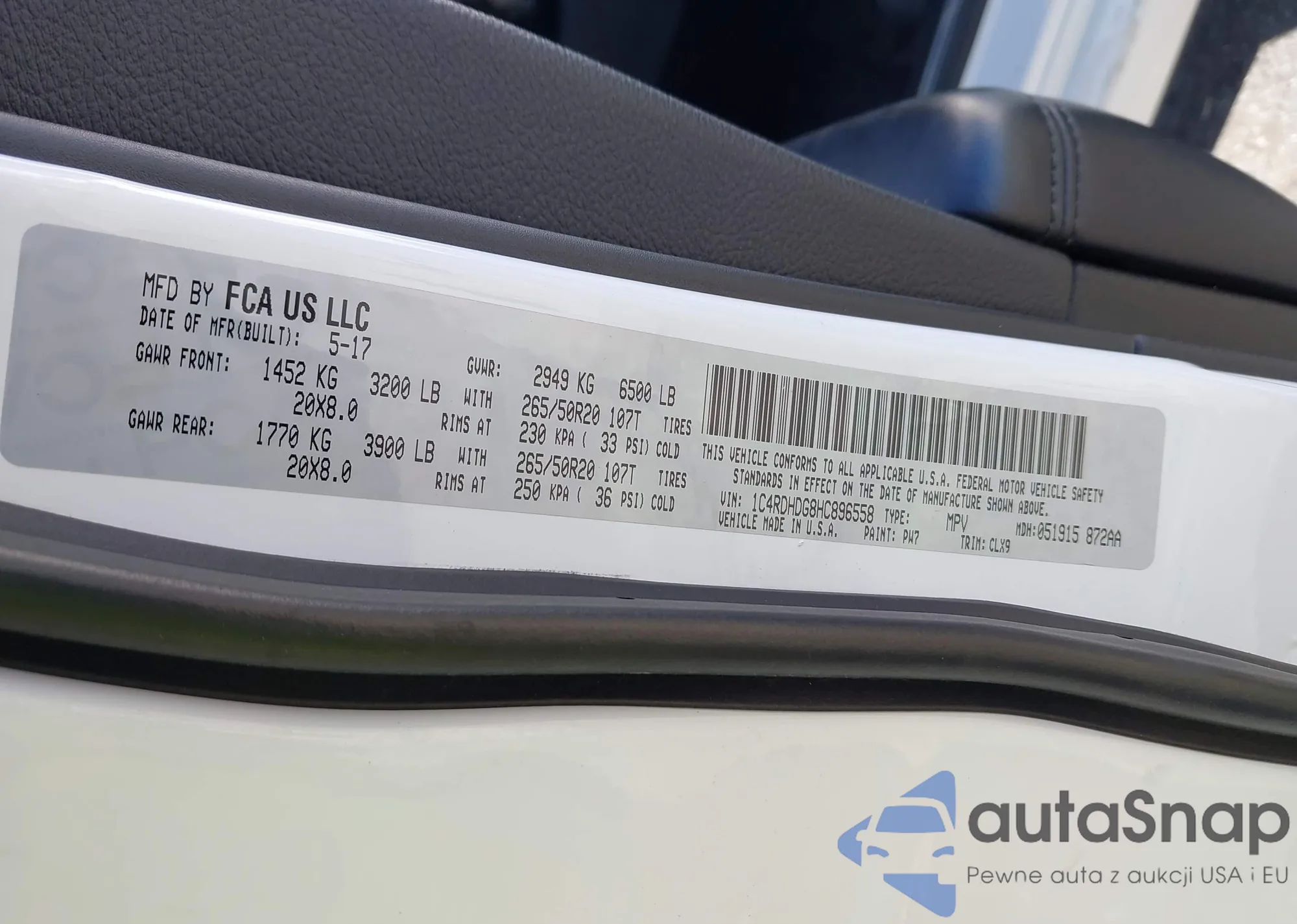 • VIN 1C4RDHDG8HC896558