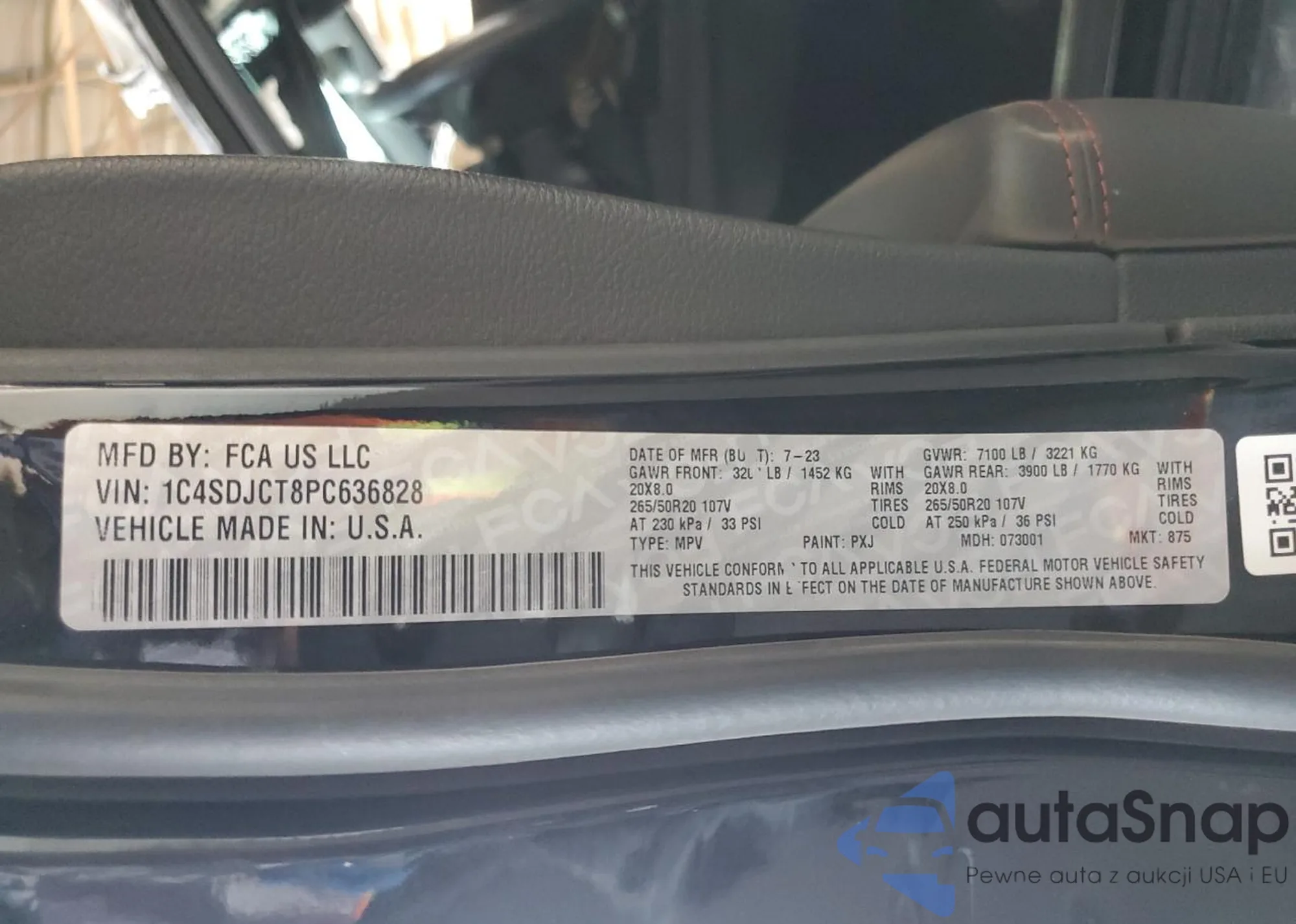 • VIN 1C4SDJCT8PC636828