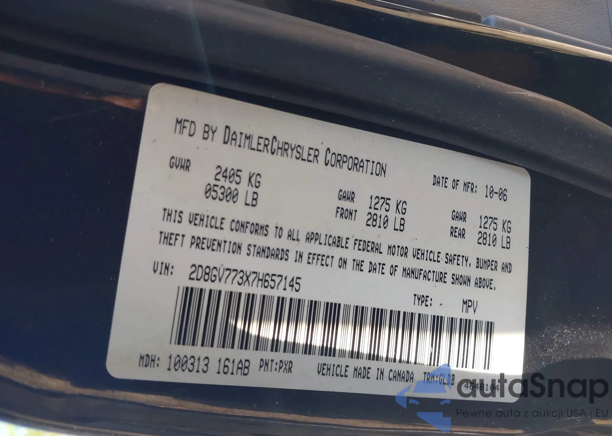• VIN 2D8GV773X7H657145