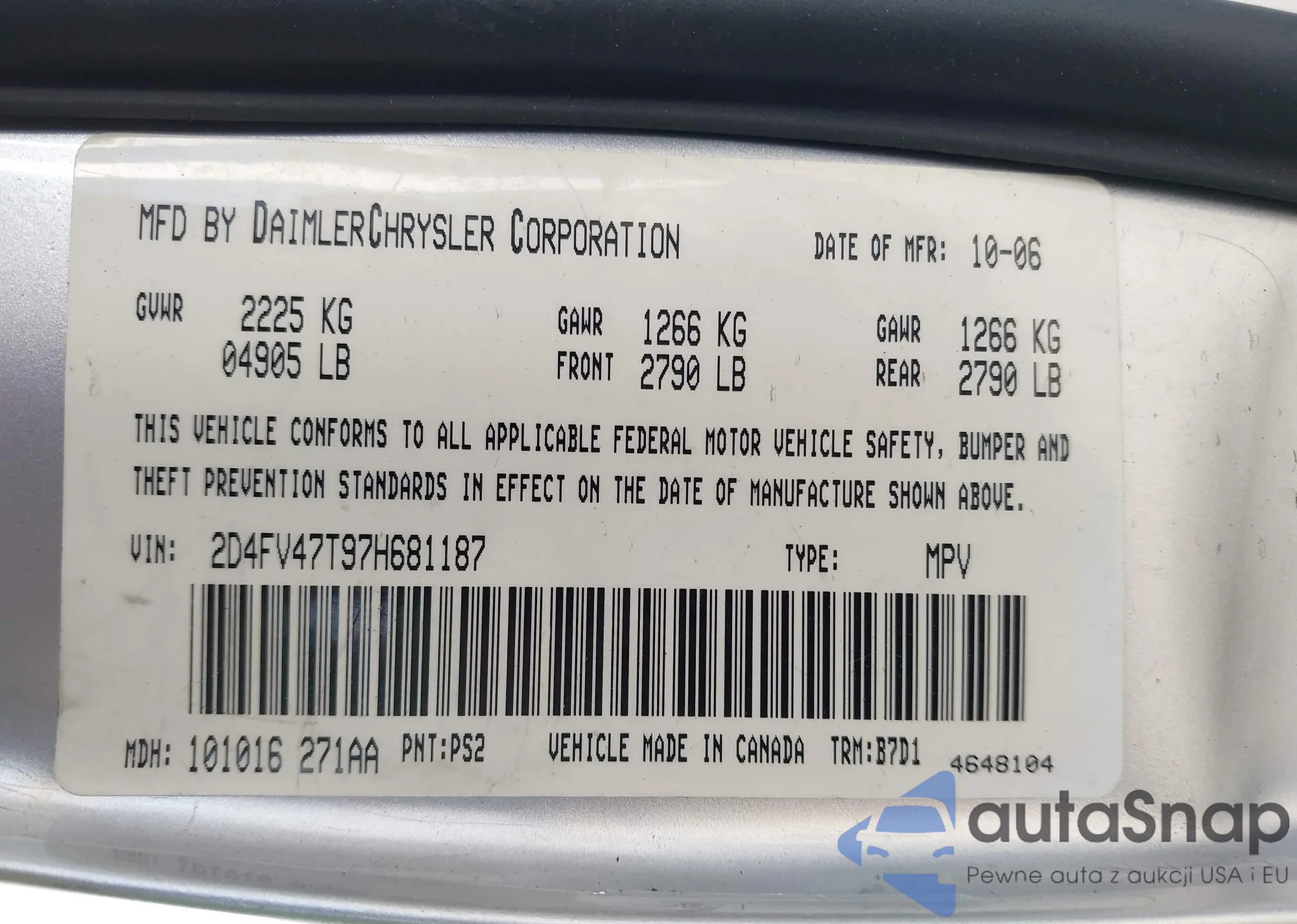 • VIN 2D4FV47T97H681187