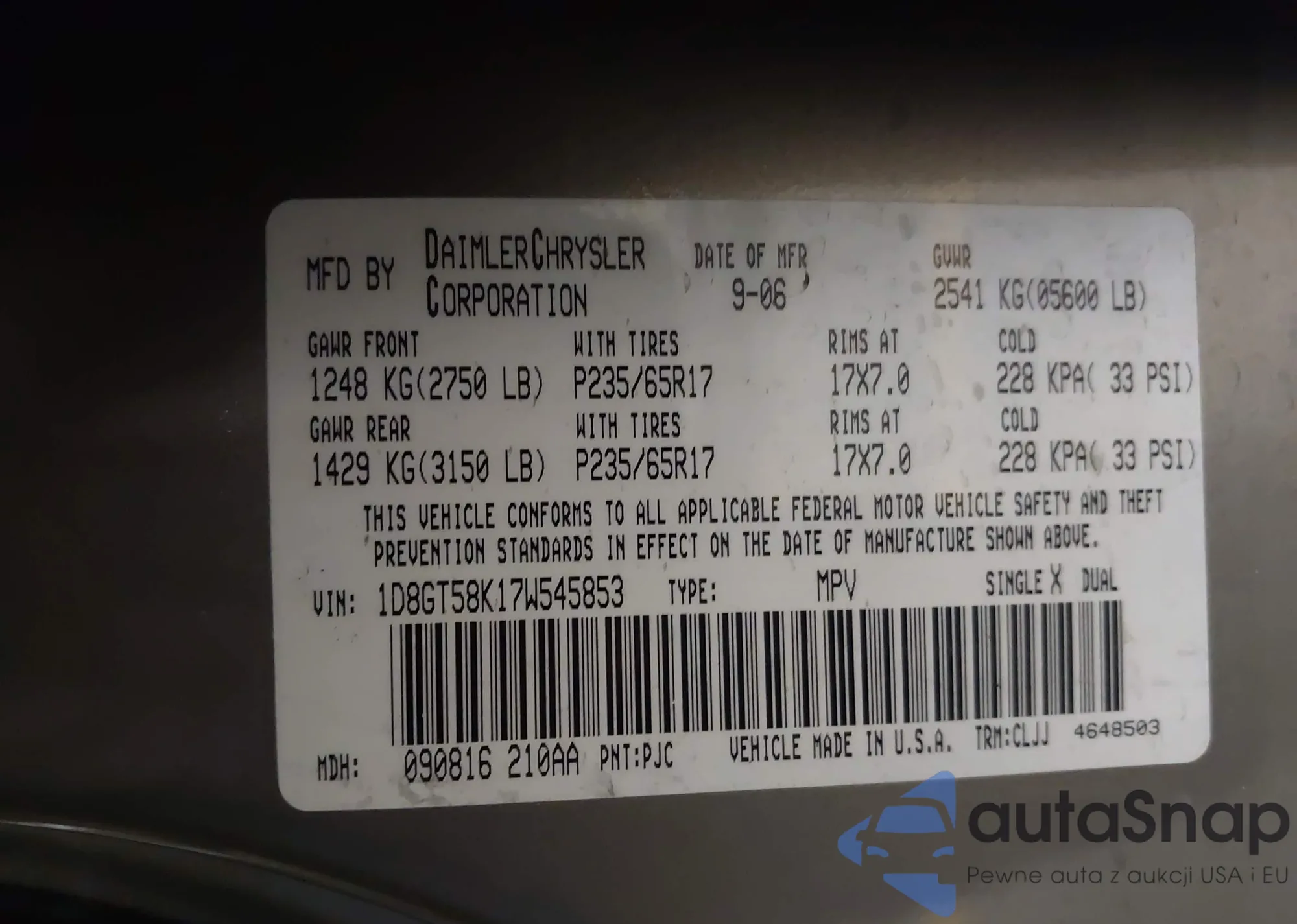 • VIN 1D8GT58K17W545853