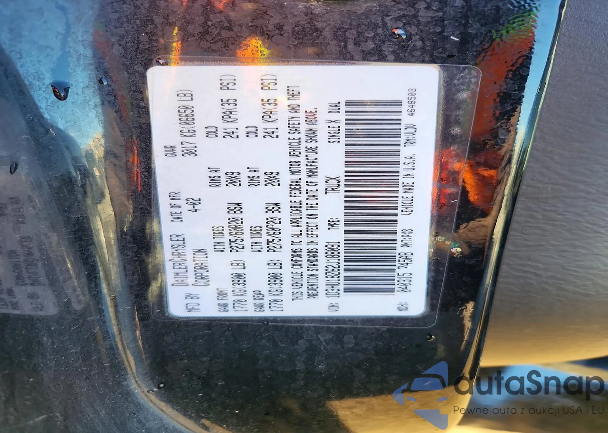 • VIN 1D3HU18Z62J188091