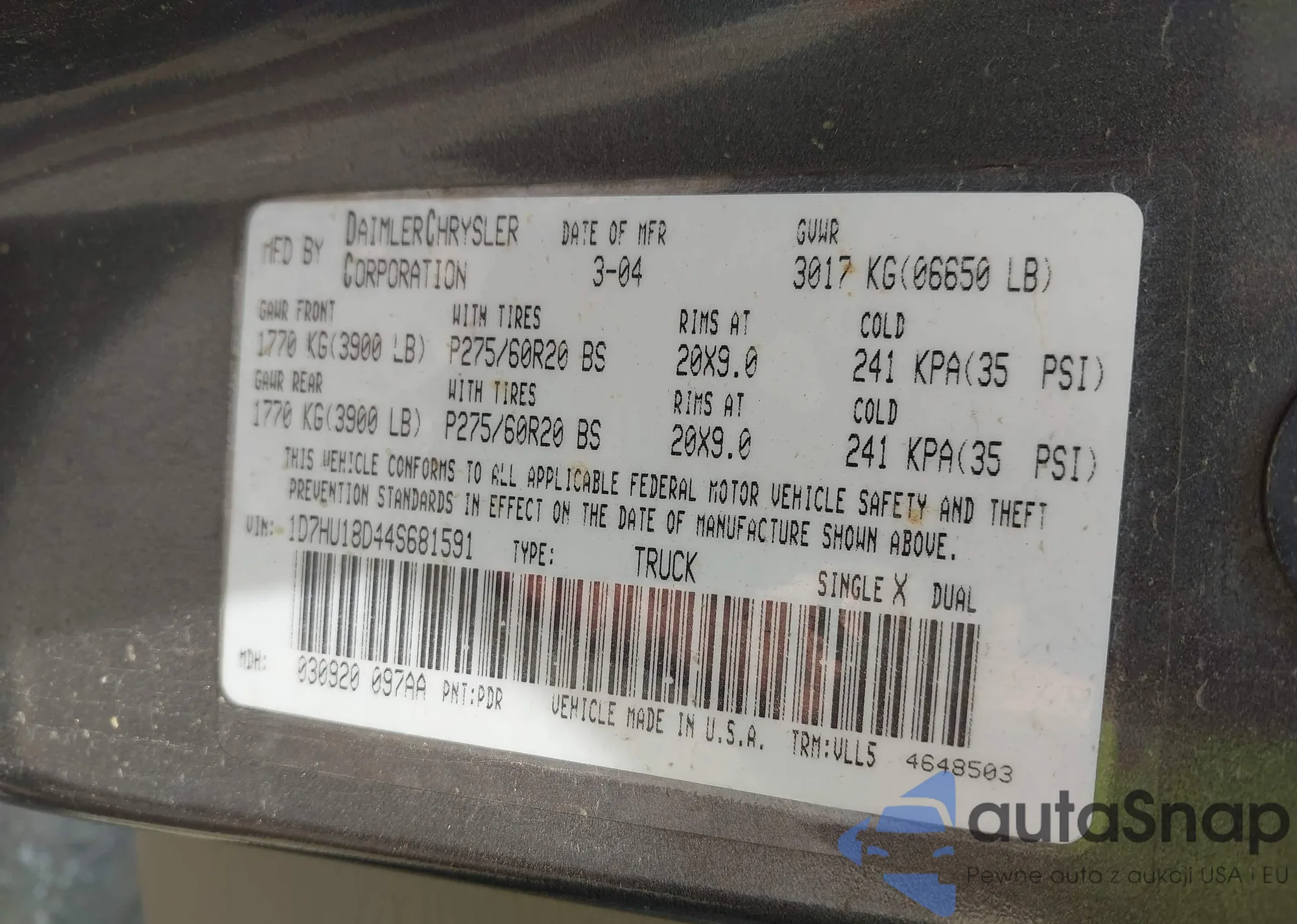 • VIN 1D7HU18D44S681591