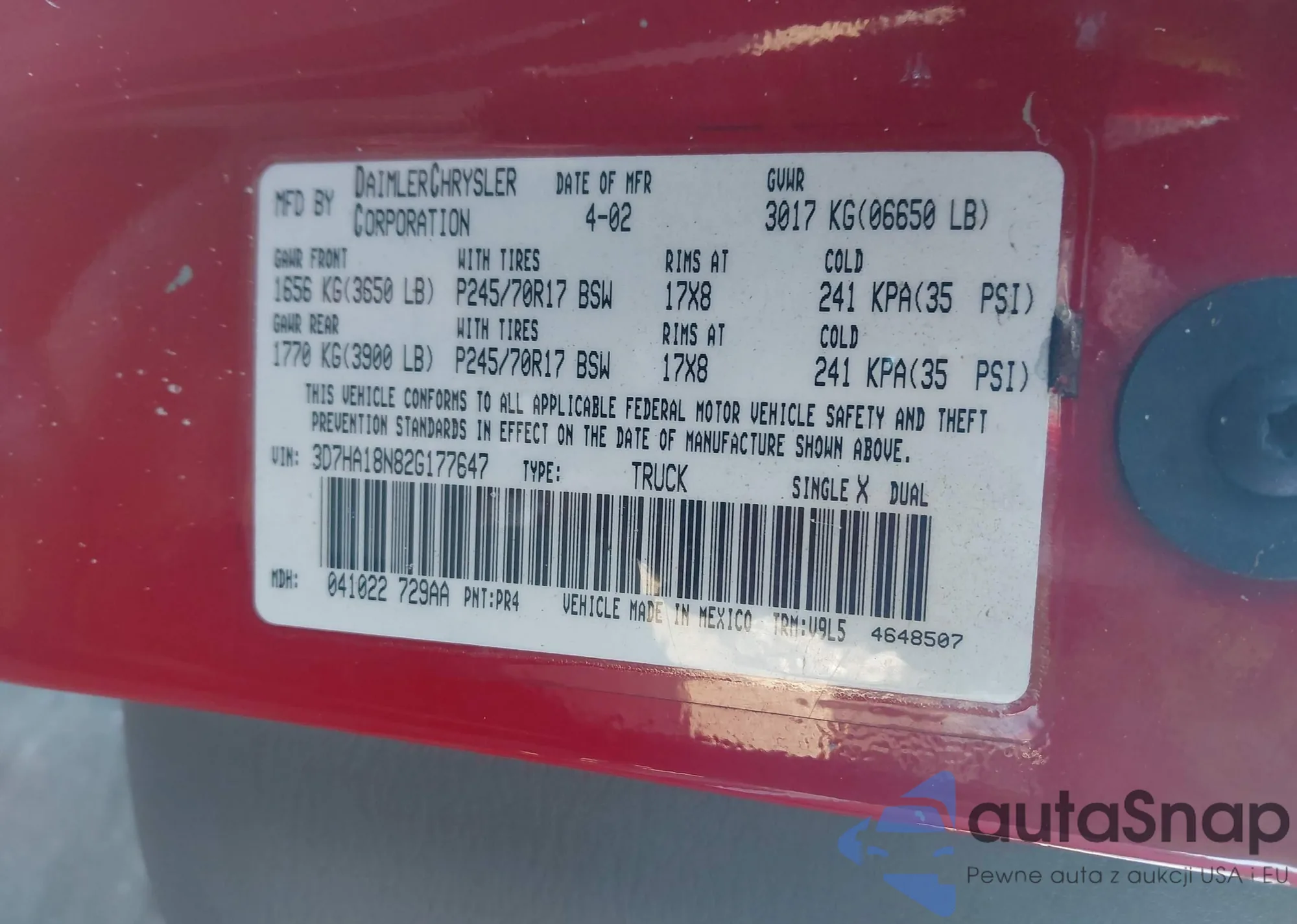 • VIN 3D7HA18N82G177647