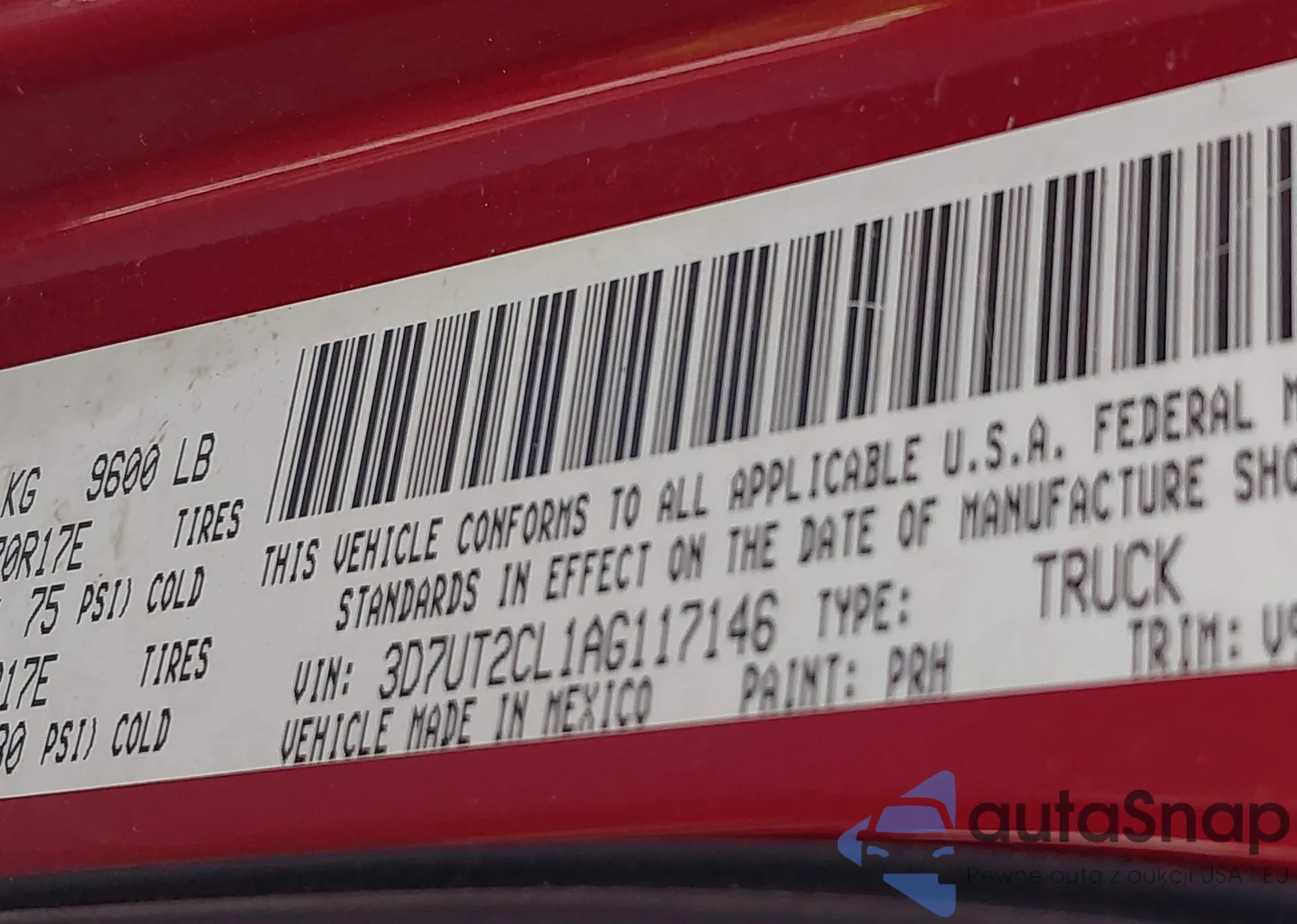 • VIN 3D7UT2CL1AG117146