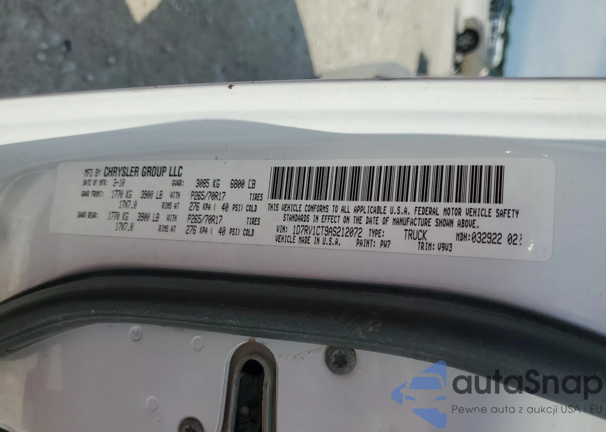 • VIN 1D7RB1CT1AS195762