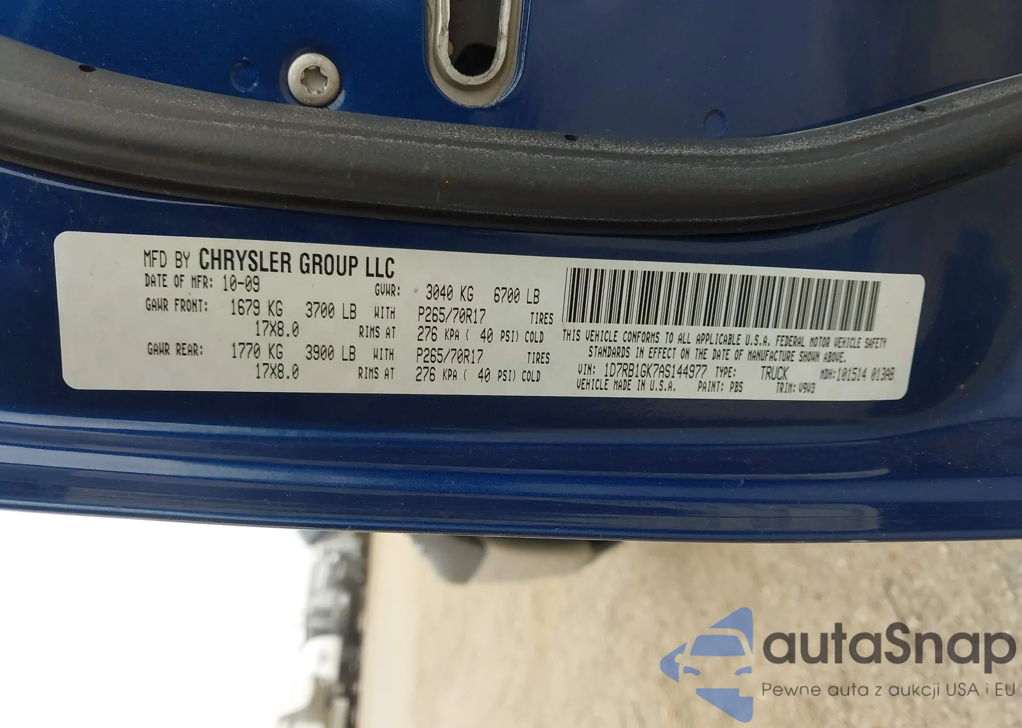 • VIN 1D7RB1GK7AS144977