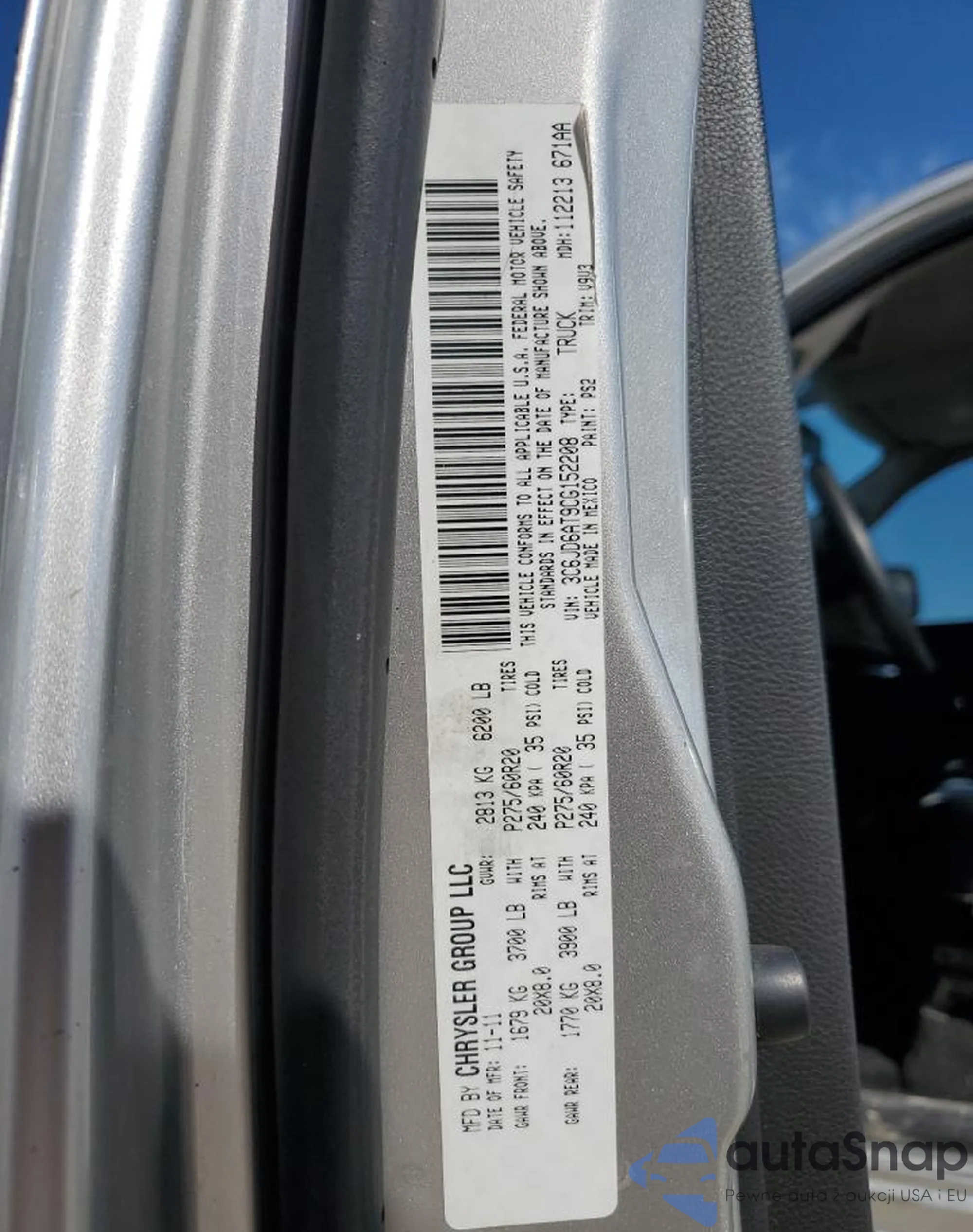 • VIN 3C6JD6AT9CG152208