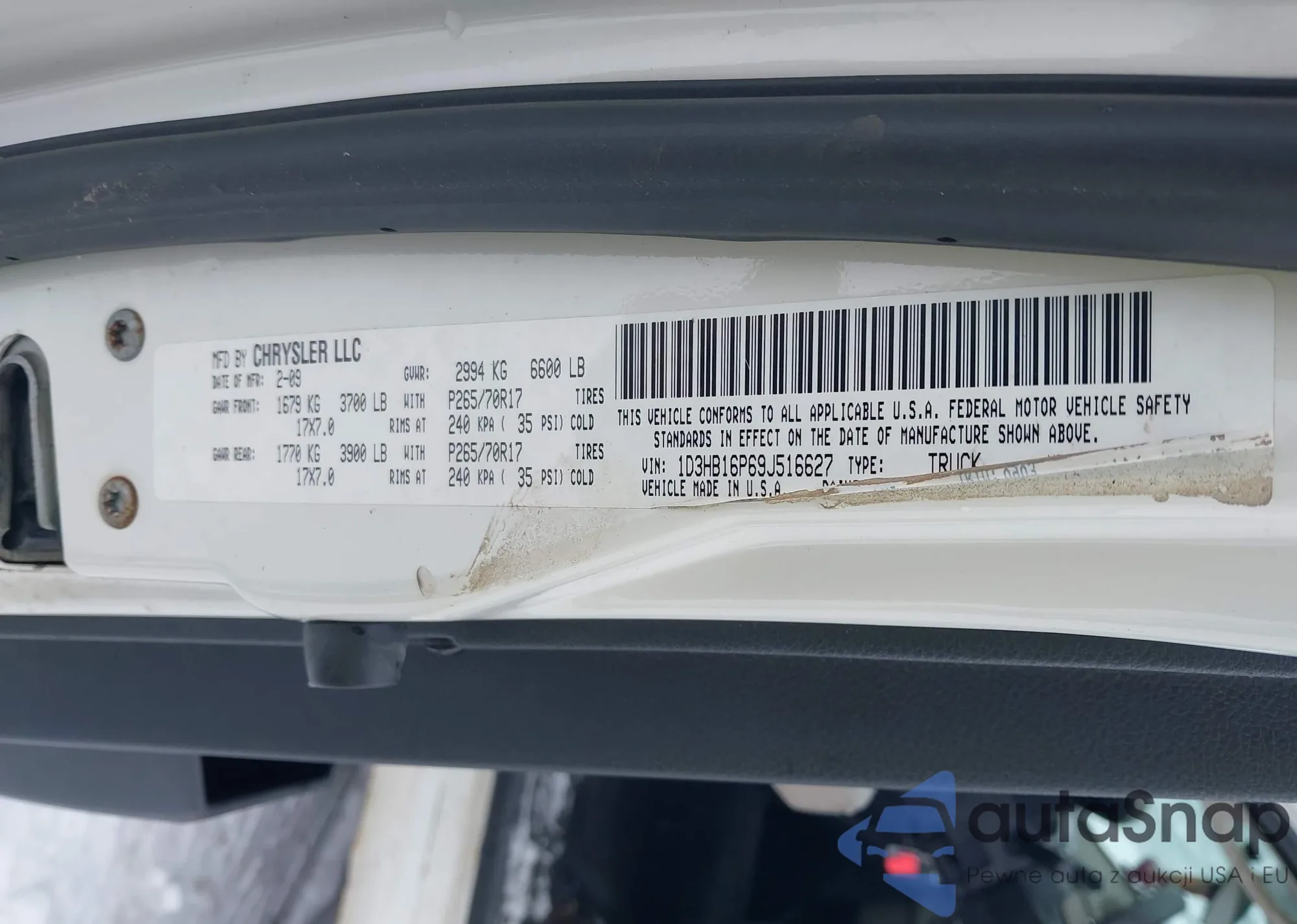 LOT: 44345430 VIN: 1D3HB16P69J516627