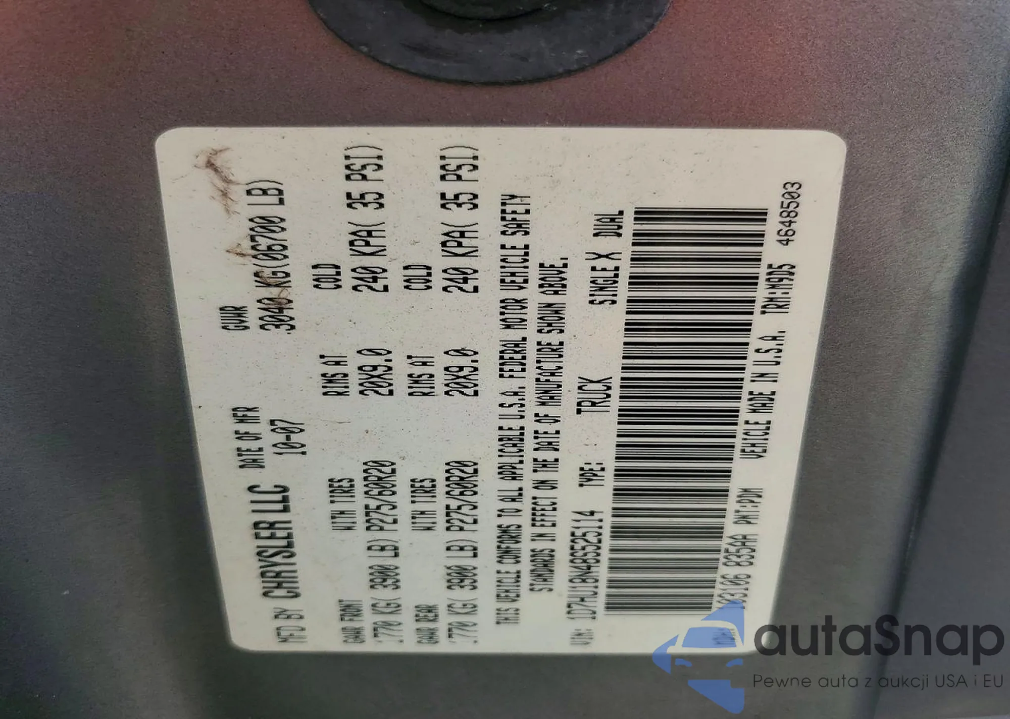 • VIN 1D7HU18N48S525114