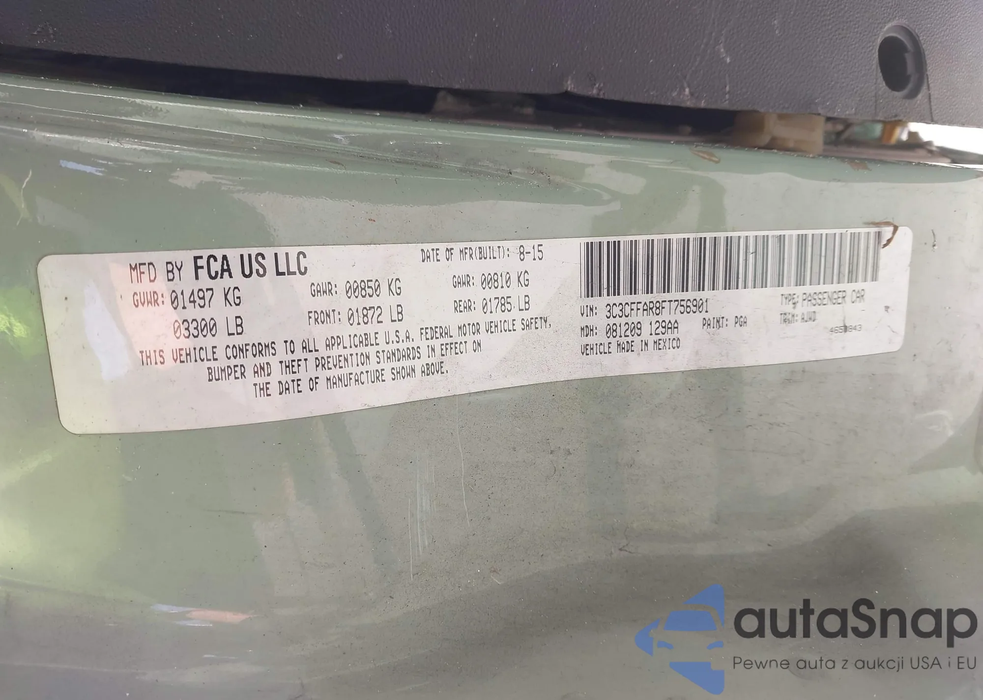 LOT: 43871184 VIN: 3C3CFFAR8FT756901