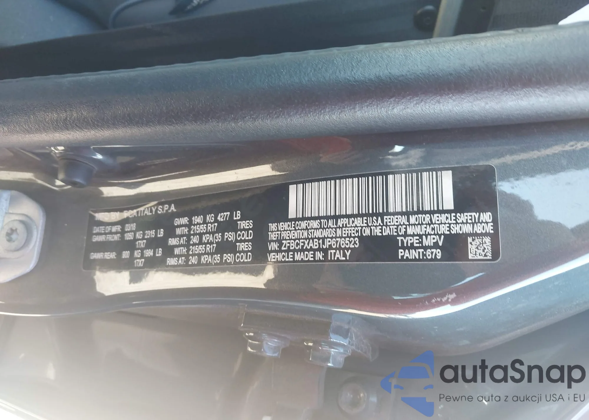 LOT: 44193509 VIN: ZFBCFXAB1JP676523