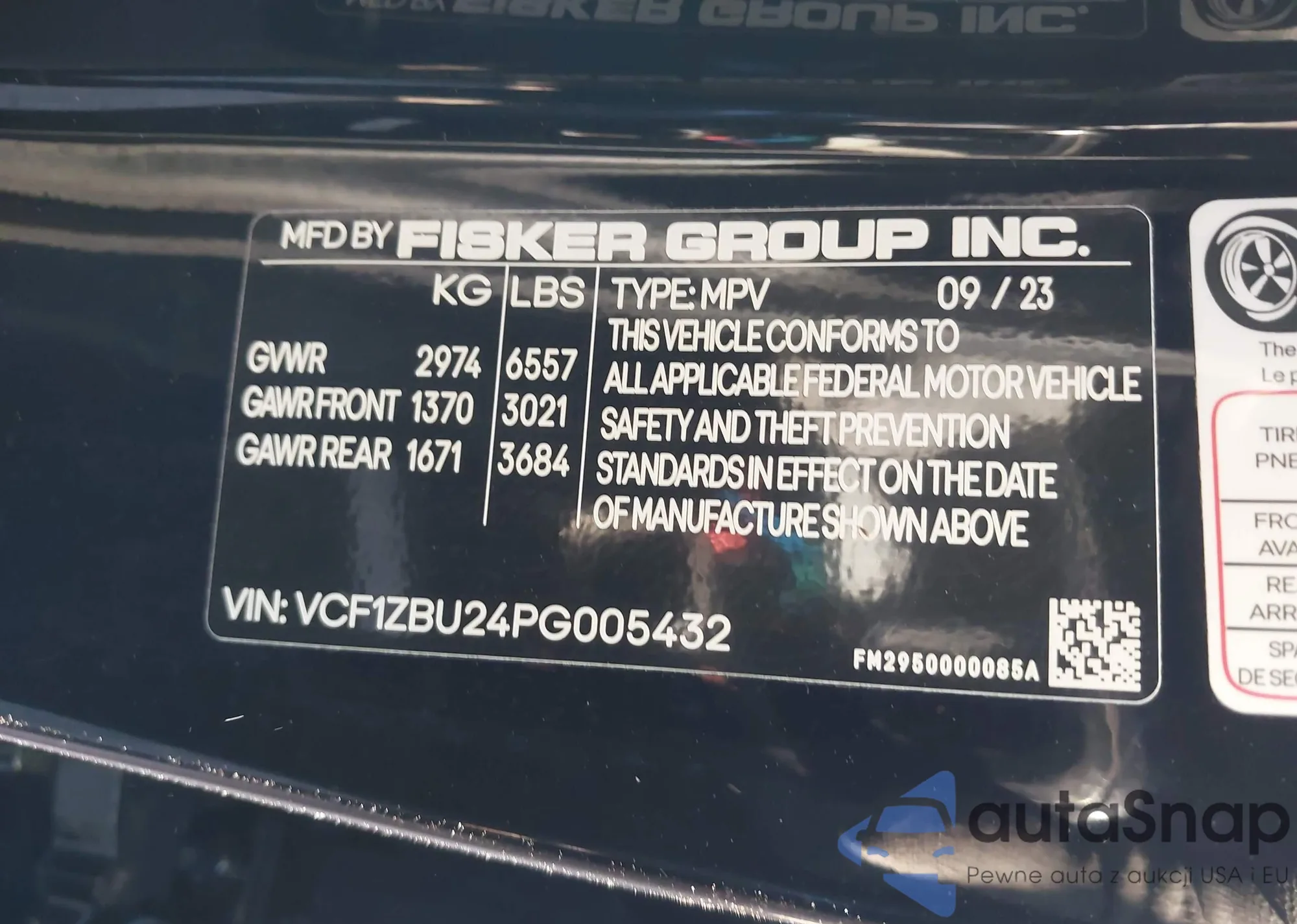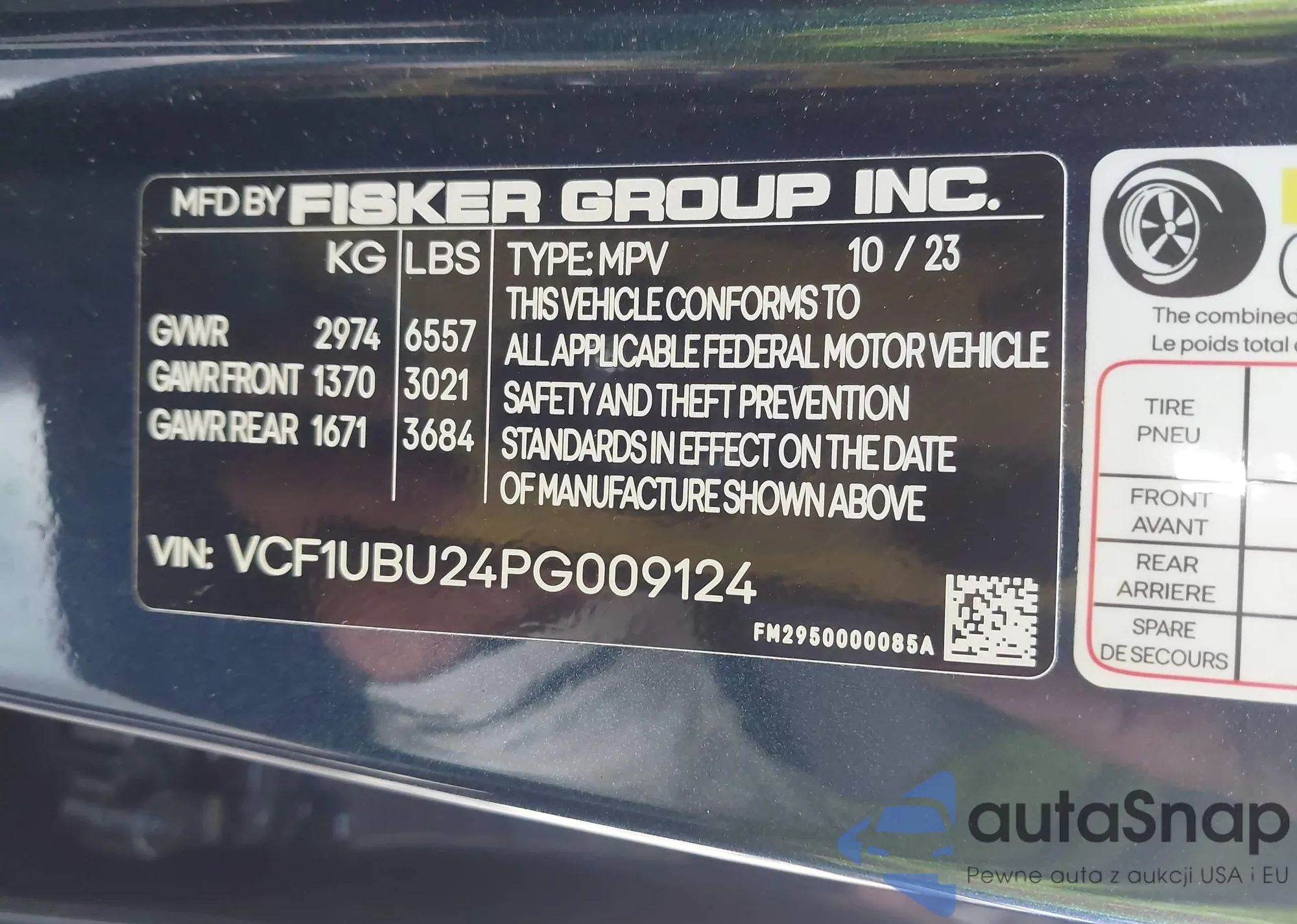 2023 Fisker Ocean Ultra z USA, uszkodzony, nr VIN VCF1UBU24PG009124