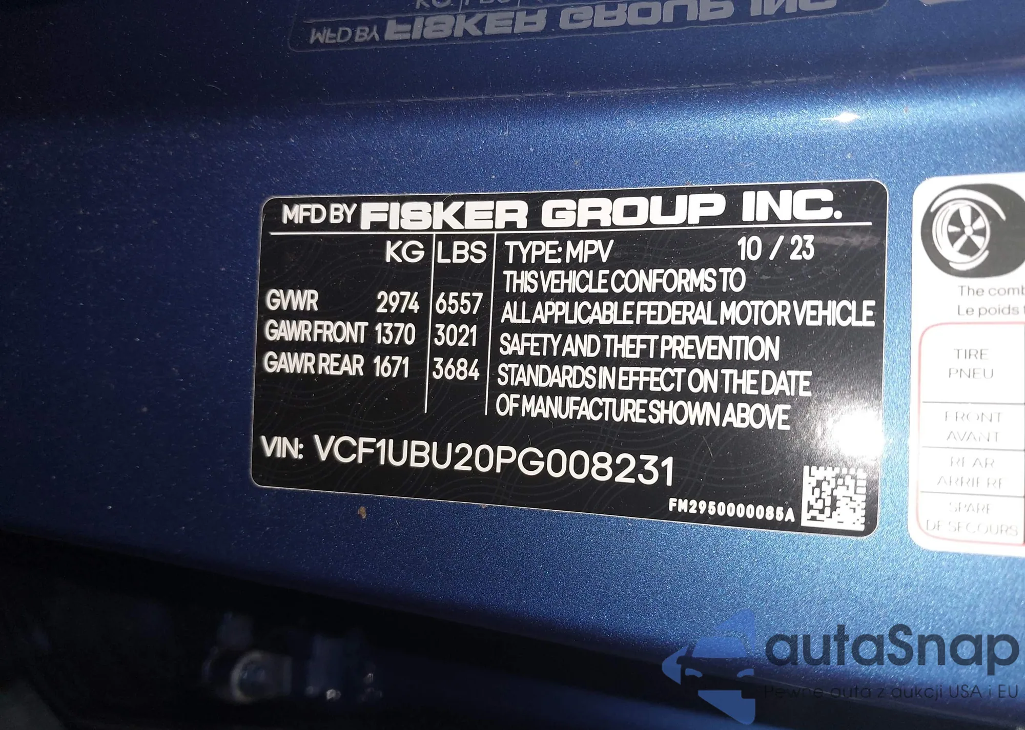 2023 Fisker Ocean Ultra z USA, uszkodzony, nr VIN VCF1UBU20PG008231