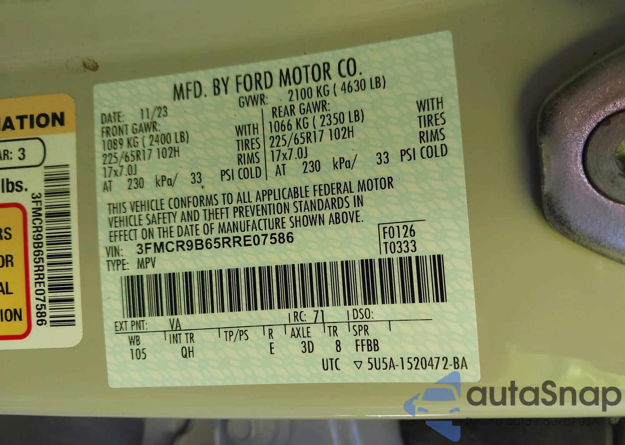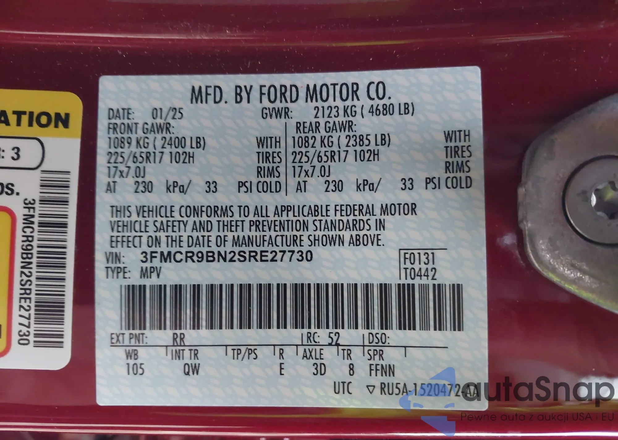 • VIN 3FMCR9BN2SRE27730