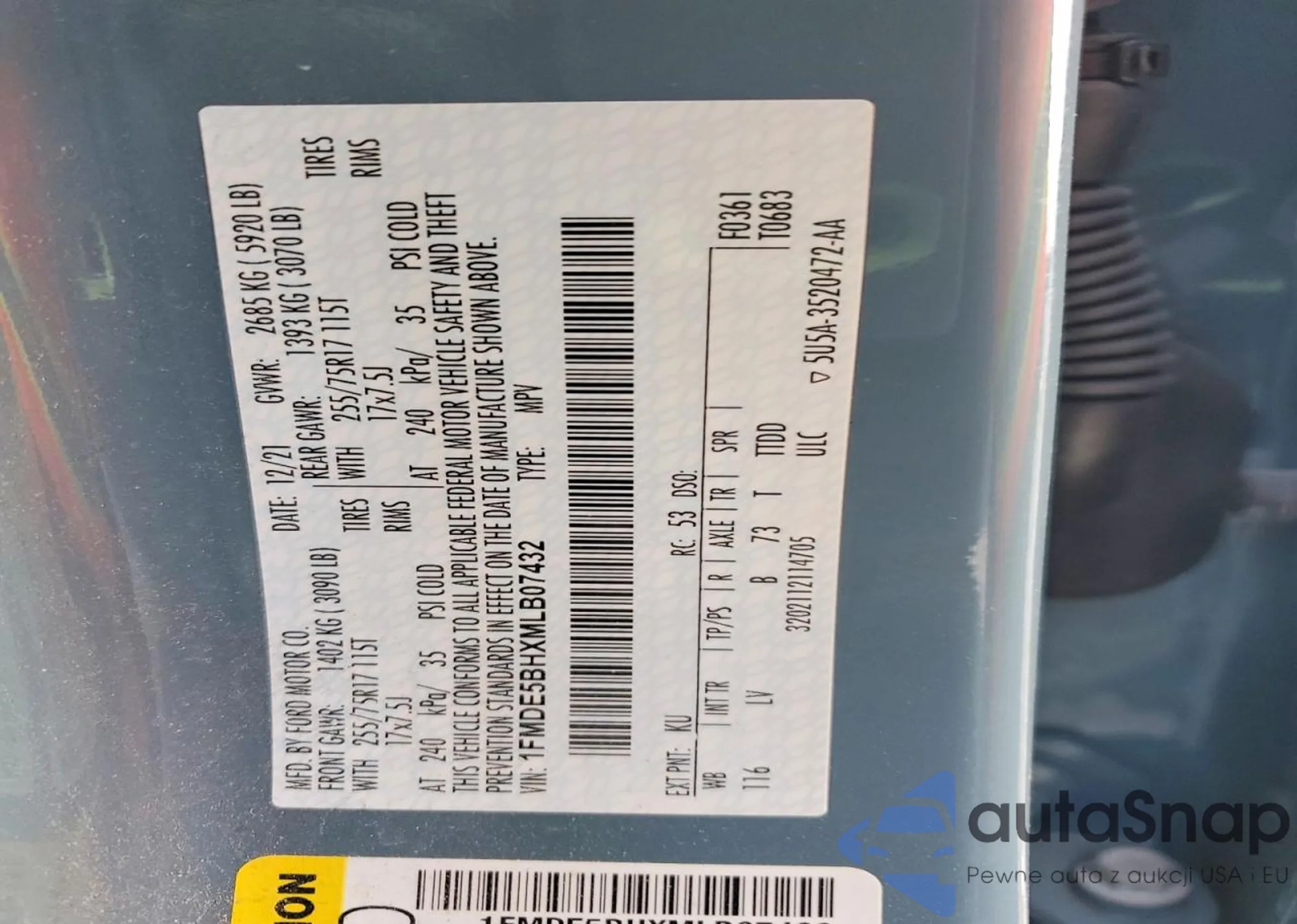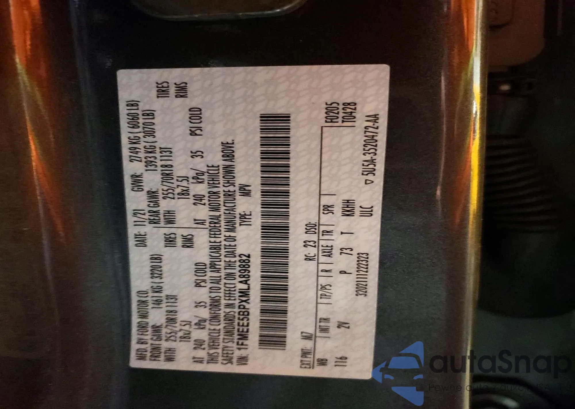 • VIN 1FMEE5BPXMLA89882