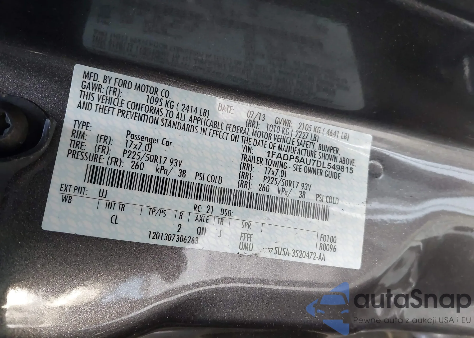 • VIN 1FADP5AU7DL553086