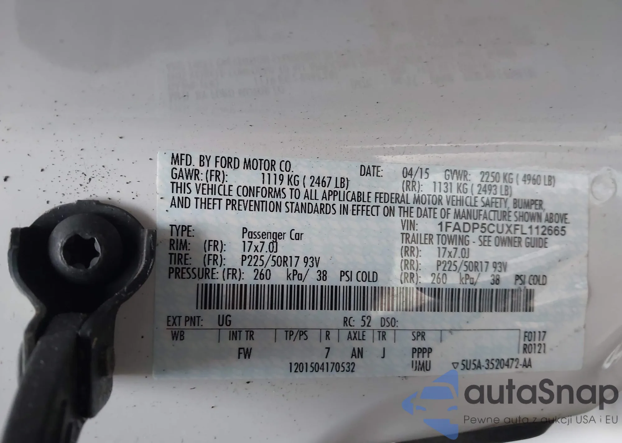 LOT: 43935217 VIN: 1FADP5CUXFL112665